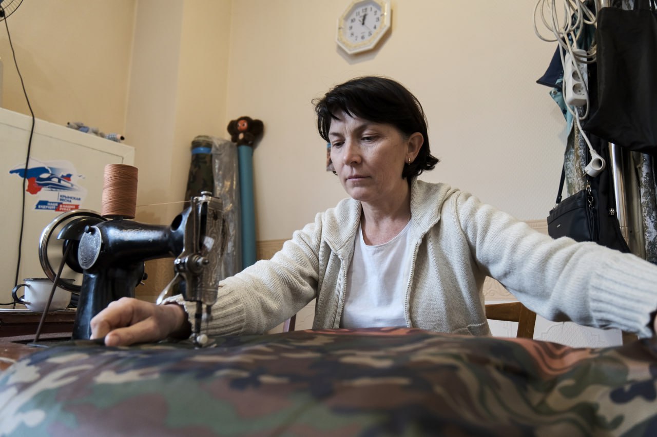 С огромным удовольствием посетила совершенно особенную «Швейную роту» Армии ЮБК, которая работает в Гаспре. 10 человек в январе начинали шить на дому антидроновые одеяла. Объемы росли, встал вопрос о помещении – уже через неделю была оборудована комната с двумя швейными машинками и столом для раскроя.