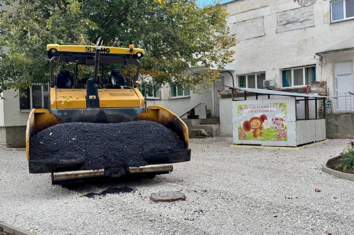 В детском саду №10 «Чебурашка» подходят к завершению работы по капитальному ремонту асфальтового покрытия.