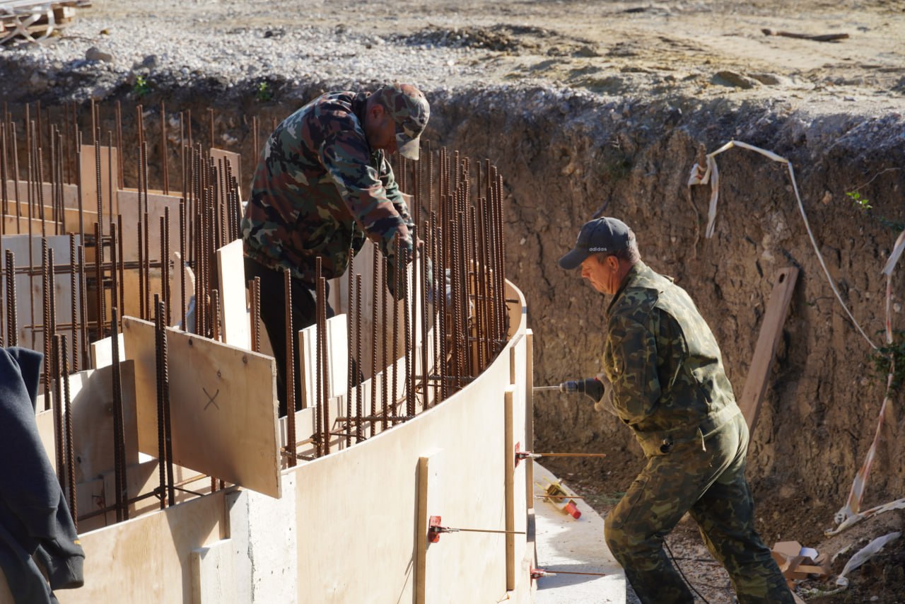 Параллельно работы сосредоточены на строительстве фонтана. Доставлено насосное оборудование и форсунки. Завершается установка опалубки чаши будущего фонтана. Ориентировочно в понедельник запланирована его заливка бетоном.