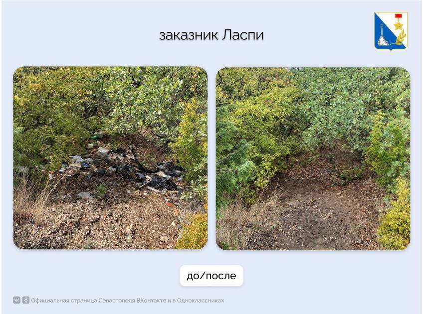 Силами «Дирекции ООПТ и лесного хозяйства» территория приведена в порядок. Теперь здесь снова чисто, как и должно быть в заповедном уголке Севастополя.
