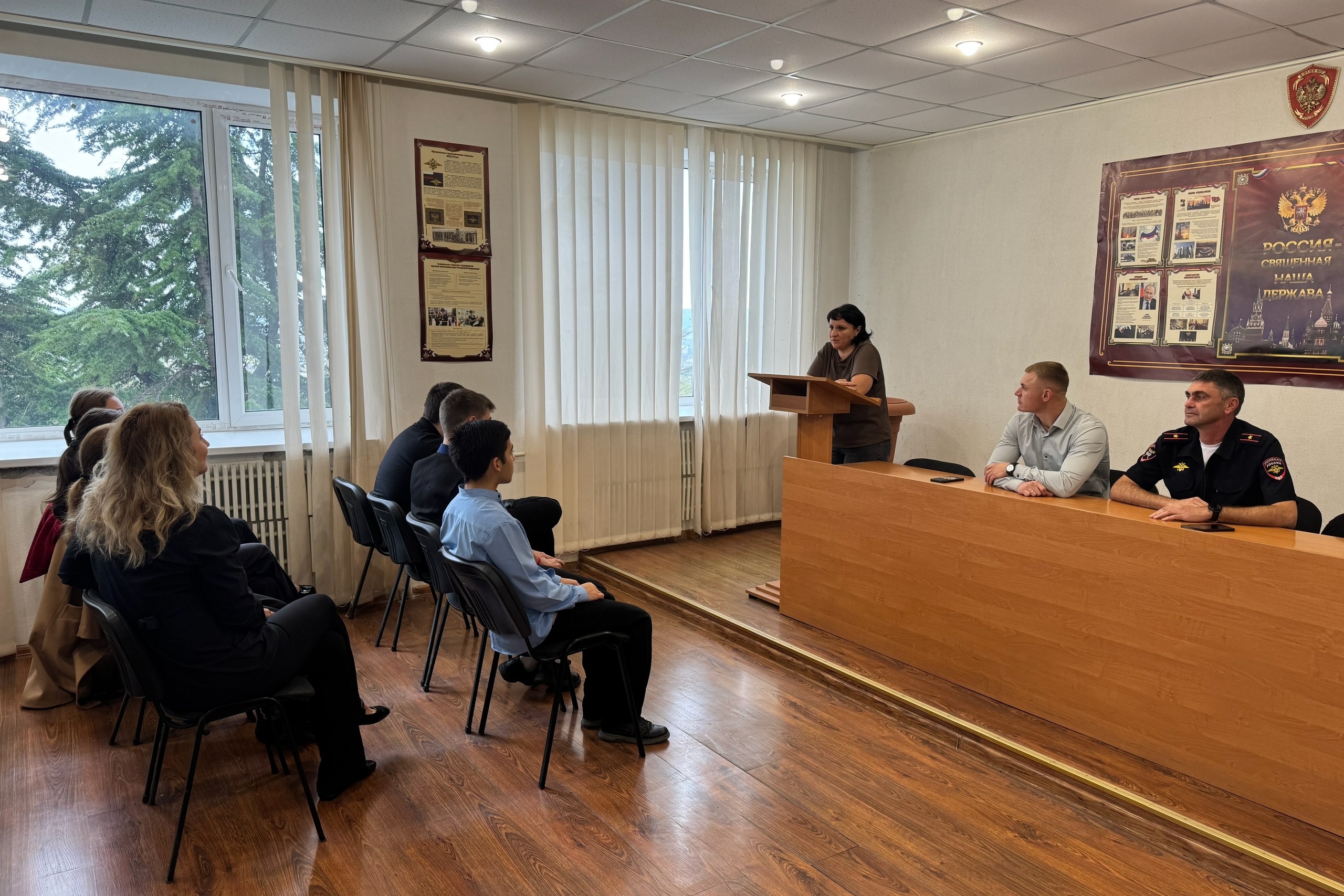 Представители различных служб ОМВД России по Бахчисарайскому району встретились с учениками 10-го класса МБОУ «Железнодорожненская СОШ им. Григоренко Б.Ф.», рассказав подрастающему поколению о своей доблестной профессии, а также о перспективах службы в правоохранительных органах.