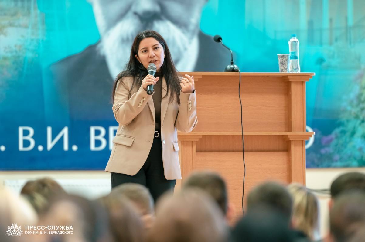 С приветственным словом выступила заместитель председателя Госкомитета молодежной политики Республики Крым Ани Григорян.