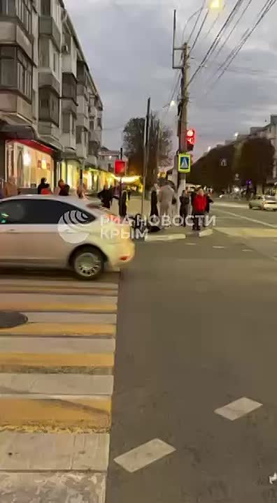 Транспортное средство лежит возле дороги на пересечении проспекта Кирова и улицы Самокиша, передает корреспондент РИА Новости Крым.