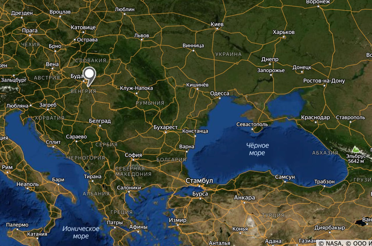 Похоже, только южный маршрут. Вылет, очевидно, из Сочи. Черное море - Болгария - Сербия - Венгрия.