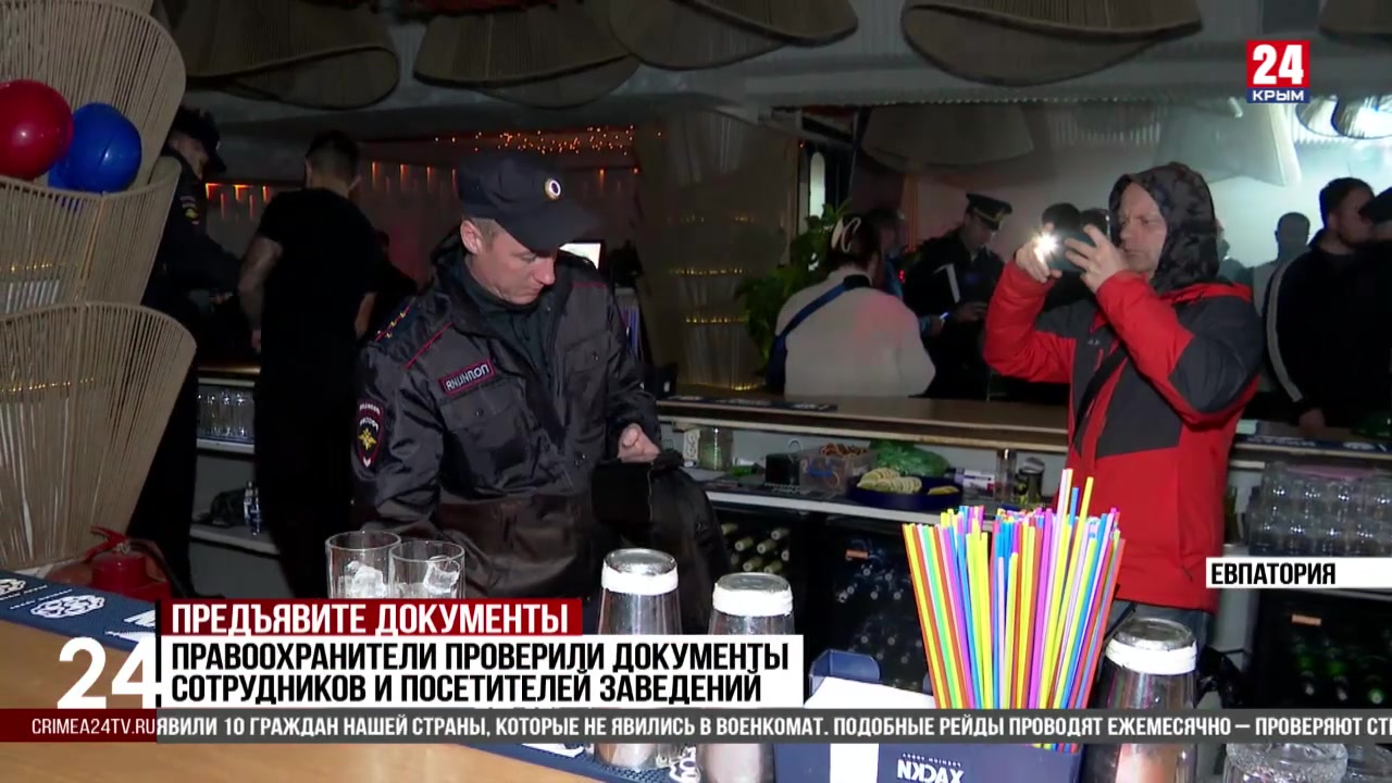 Предъявите документы. Сотрудники правоохранительных органов и силовых структур провели рейд по ночным заведениям Евпатории. В этот раз искали тех, кто получил паспорт России, но не встал на воинский учёт. Сколько нарушителей зафиксировали? Расскажет корреспондент телеканала «Крым 24» Ангелина Штырина.
