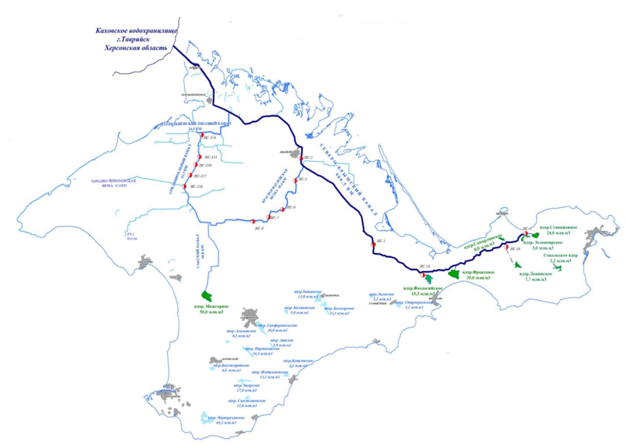 Крупнейший водохозяйственный комплекс, включающий в себя магистральный Северо-Крымский канал (СКК) - уникальное по сложности и масштабам инженерное сооружение протяженностью 400,5 км с максимальной пропускной способностью в голове канала 294 кубометров в секунду, с каскадом насосных станций, 8 наливных водохранилищ общим объемом 145,35 млн. куб. м, а также его ветки – распределительные каналы, работающие в едином комплексе.
