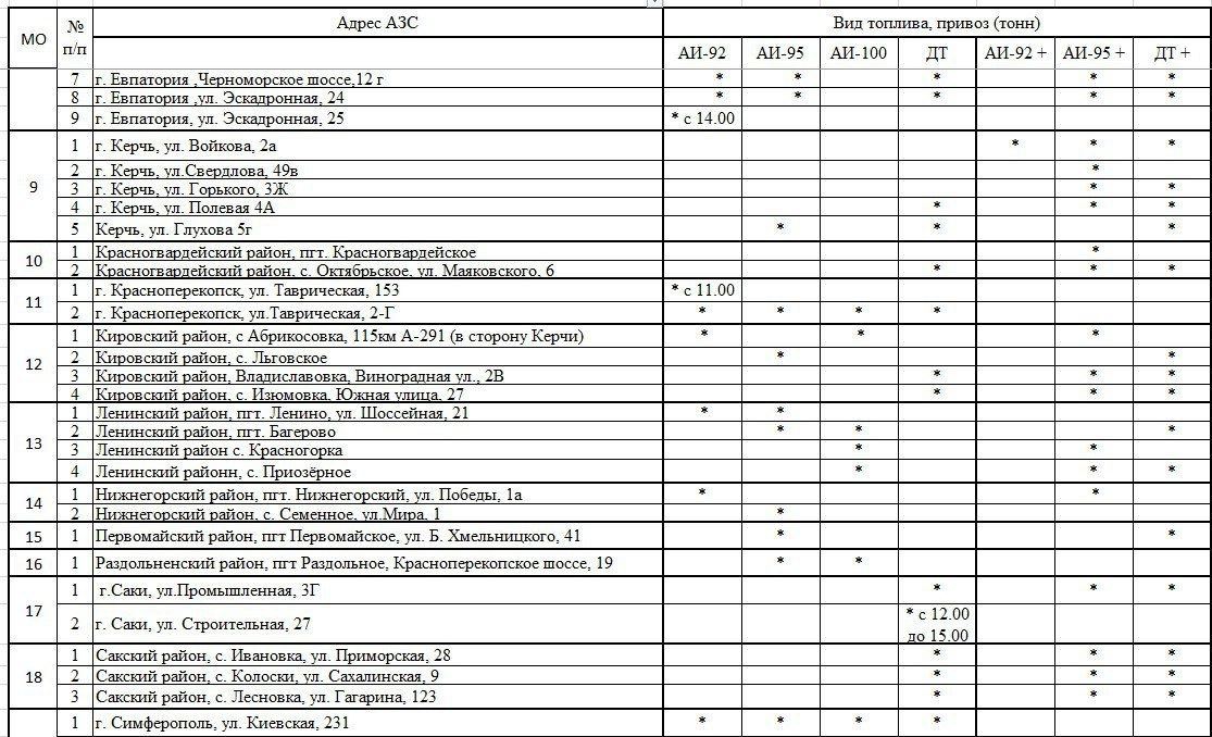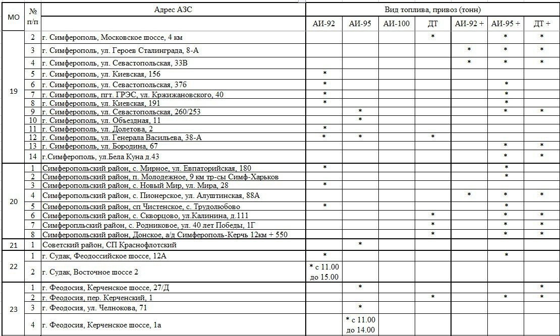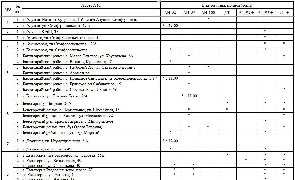 12:09Уважаемые жители Симферопольского района! Публикуем информацию о наличии топлива на автозаправочных станциях, в том числе расположенных на территории Симферопольского района реализуемого за наличный расчет. актуально на 12:00 19.10.2025.// Администрация Симферопольского района - Z