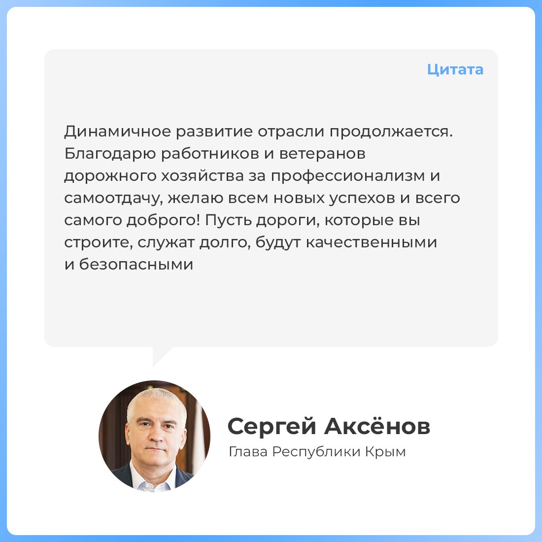 Глава республики Сергей Аксёнов поздравил крымчан с Днём работников дорожного хозяйства. Профессиональный праздник отмечается в третье воскресенье октября.