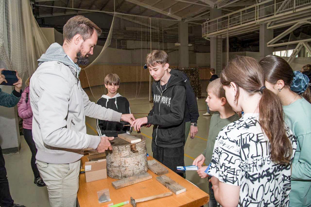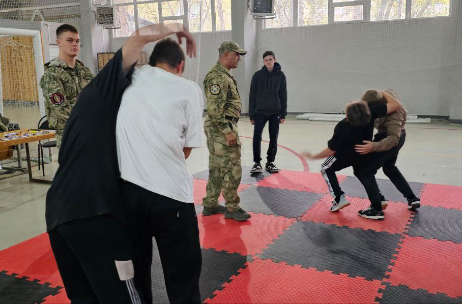 Инструкторами же выступили участники спецоперации. Они поделились с ребятами навыками самообороны и успениями быстро слиться с местностью.