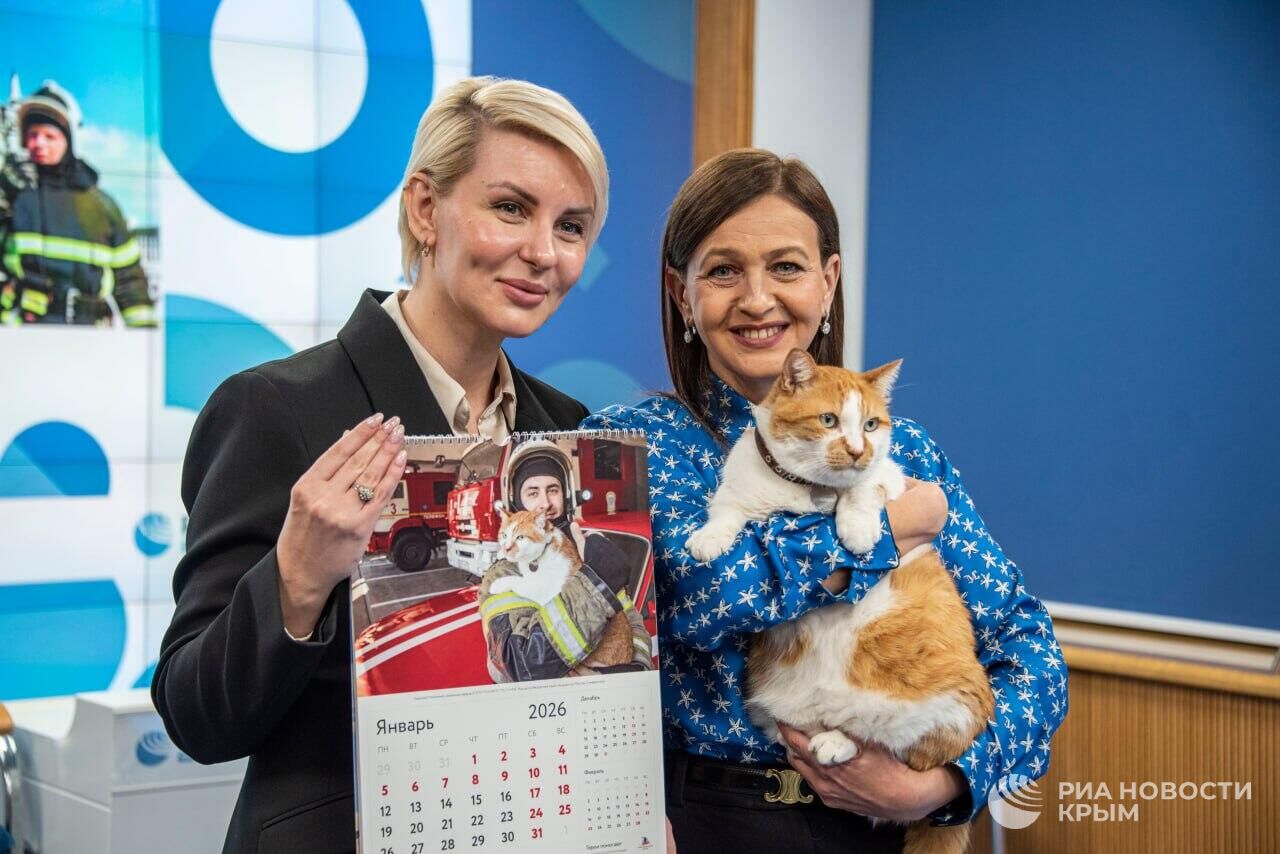 Совместный проект "Герои помогают" стал результатом сотрудничества хосписа с МЧС. Редактор отдела котоновостей РИА Новости Крым кот Мостик тоже приложил лапу к созданию календаря и позировал с пожарными.