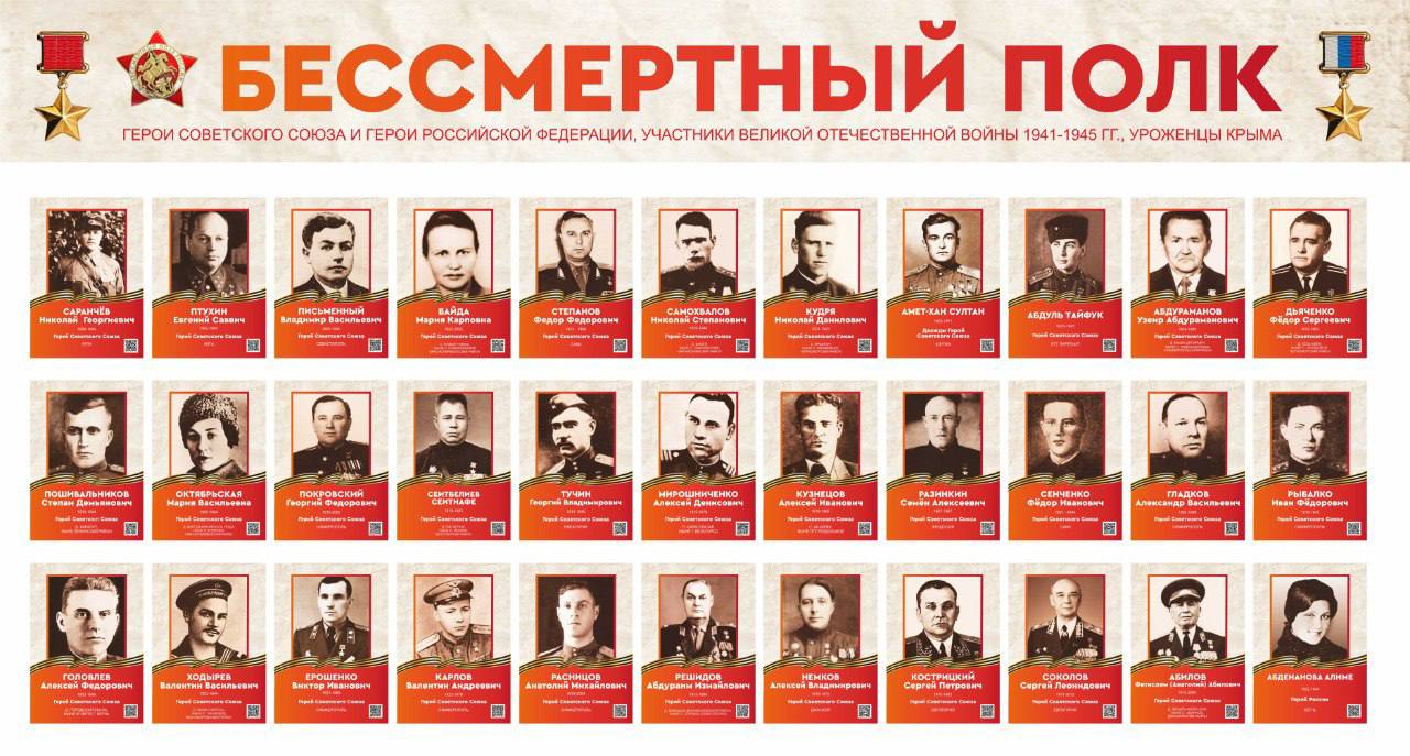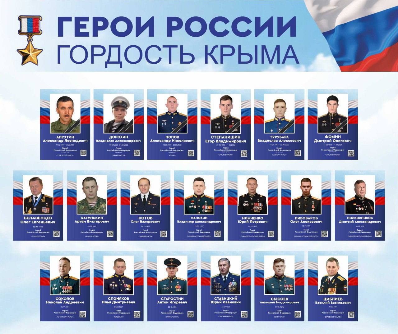 На базе средней общеобразовательной школы - детского сада N 36 в Симферополе стартовал масштабный проект «Герои России — гордость Крыма». На первом этапе реализации проекта в школах республики размещены тематические стенды с именами и биографиями Героев России и Советского Союза.