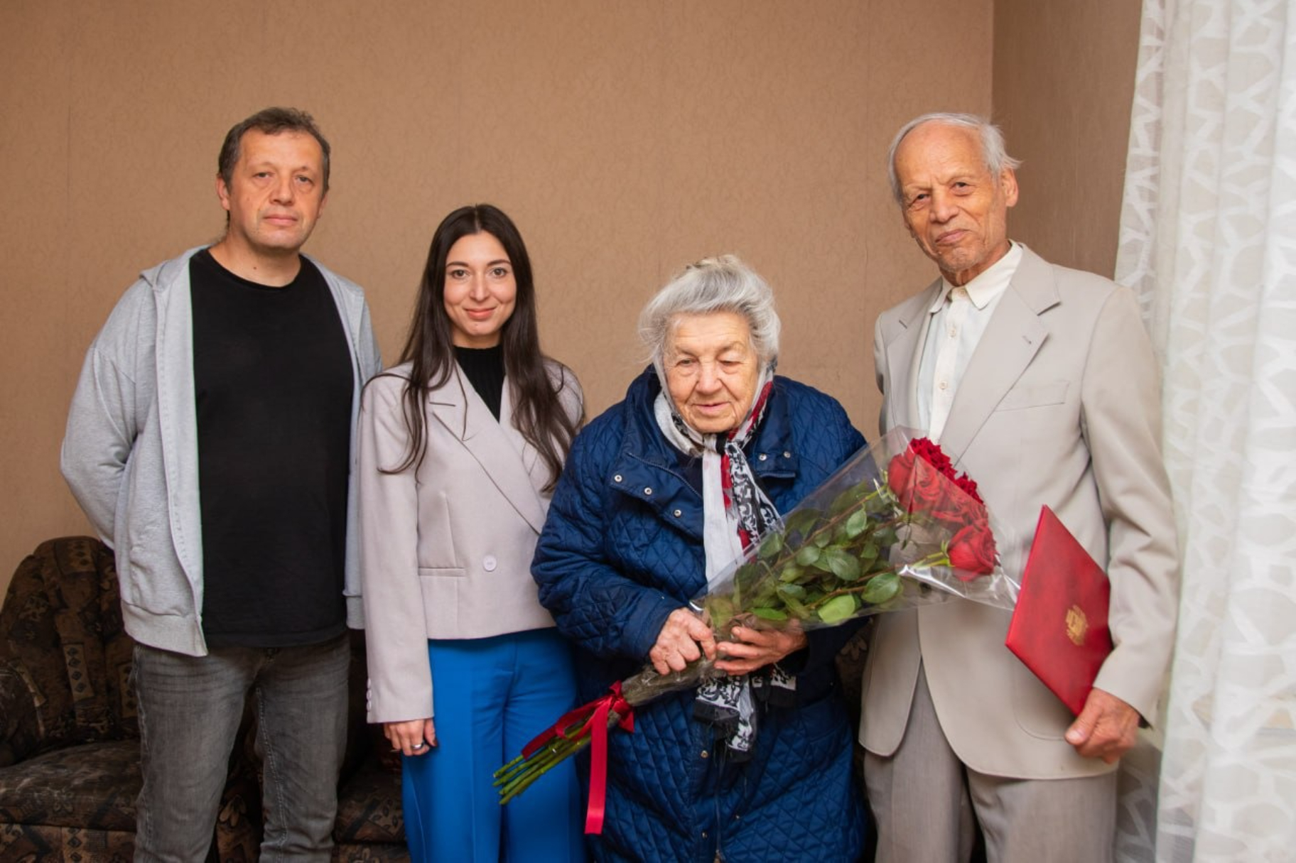 В честь знаменательного события семью посетили представители администрации города Симферополя, чтобы лично поздравить супругов с этой значимой датой.