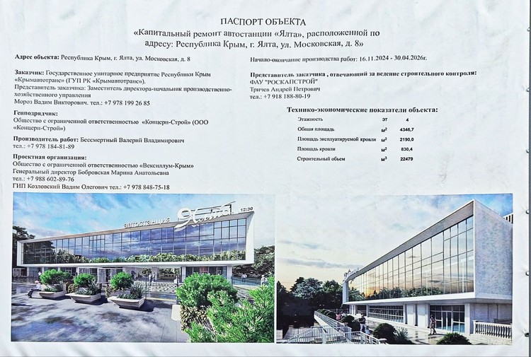- Контракт по капитальному ремонту автостанции «Ялта» составляет 486 716 496 рублей, - сообщили КП-Крым в пресс-службе регионального министерства транспорта.