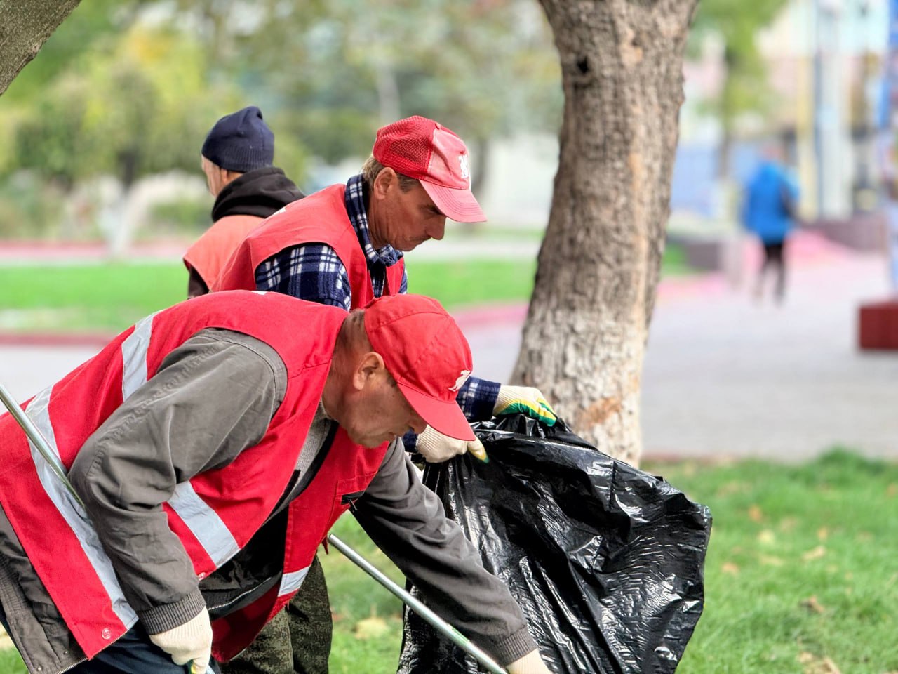 В уборке листвы и случайного мусора, очистке подбордюрной зоны, тротуаров и других пешеходных зон от пыли ежедневно участвуют более двухсот рабочих. Бригады трудятся во всех районах города.