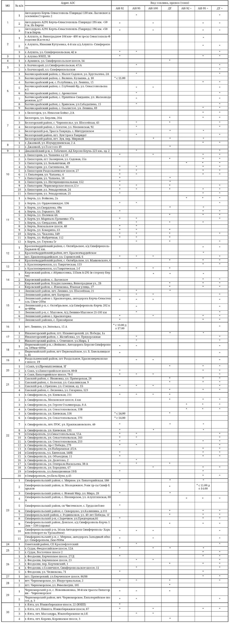 Актуальная информация о наличии топлива на сегодняшний день на АЗС полуострова представлена ниже.