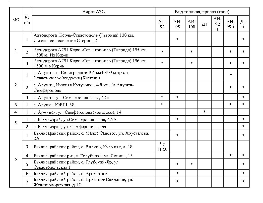 В прилагаемом списке указаны марки топлива и адреса АЗС, где оно доступно в свободной продаже.