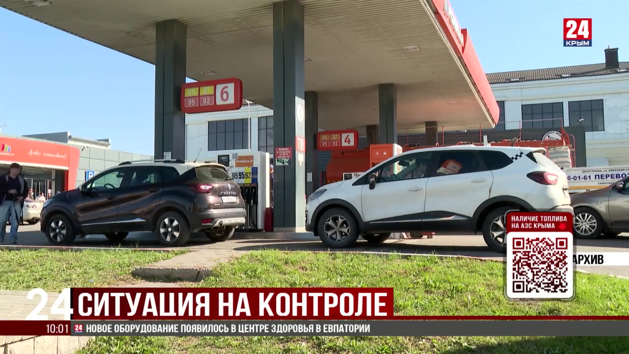 Количество автозаправочных станций, где есть топливо в свободной продаже, продолжает расти. Сегодня бензин можно приобрести на 130 АЗС, сообщил председатель Совета министров Республики Юрий Гоцанюк. Актуальный список адресов и дополнительная информация представлены на официальных ресурсах регионального министерства топлива и энергетики – перечень доступен и по QR-коду, который вы видите на экране. Добавлю, узнать больше о наличии бензина можно и по телефонам «горячей линии» – они также опубликованы в социальных сетях и на страницах профильного ведомства.
