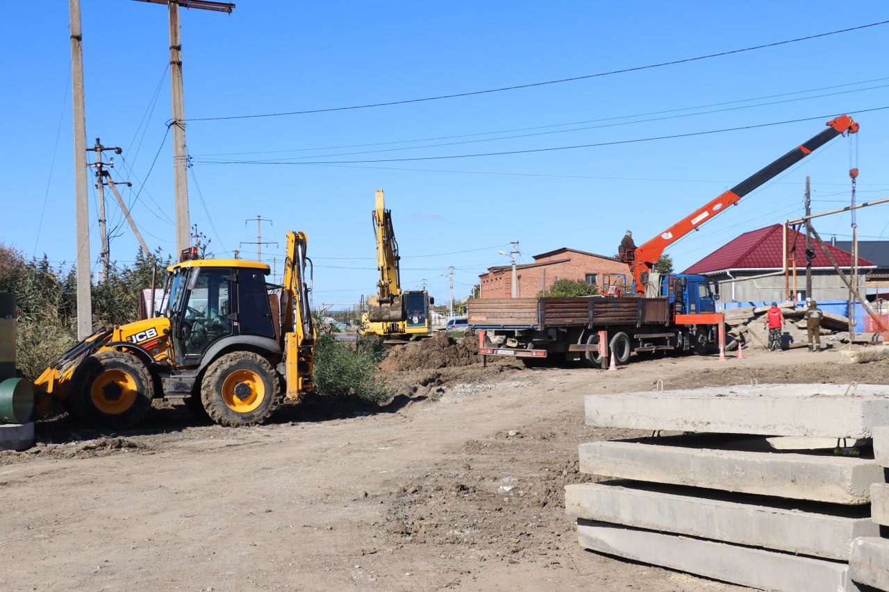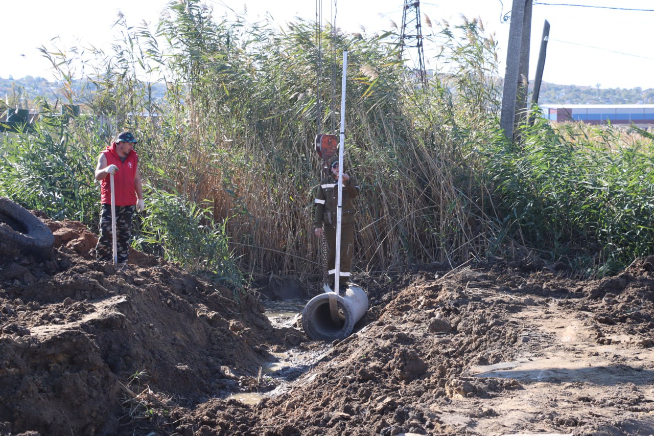 С помощью тяжелой техники сотрудники Службы городского хозяйства выкопали траншею, в которую закладывают трубы. По ним вода из бетонных лотков будет уходить в противоположном направлении от жилого массива.