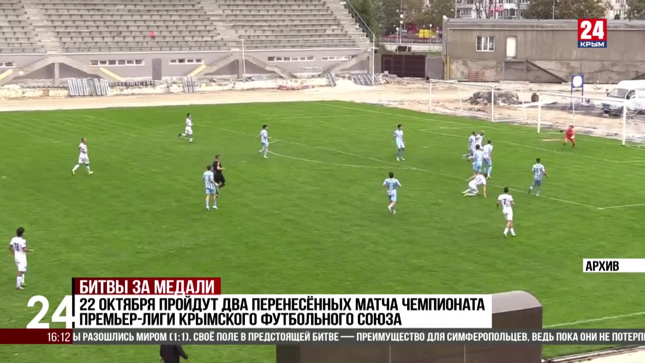 22 октября пройдут два перенесённых матча чемпионата премьер-лиги Крымского футбольного союза. В них встретятся главные претенденты на медали по итогам турнира. Лидирующая «Таврия» дома примет своего главного преследователя — «Кызылташ». А «Океан», занимающий третье место, сыграет с прямым конкурентом — клубом «Заречное».