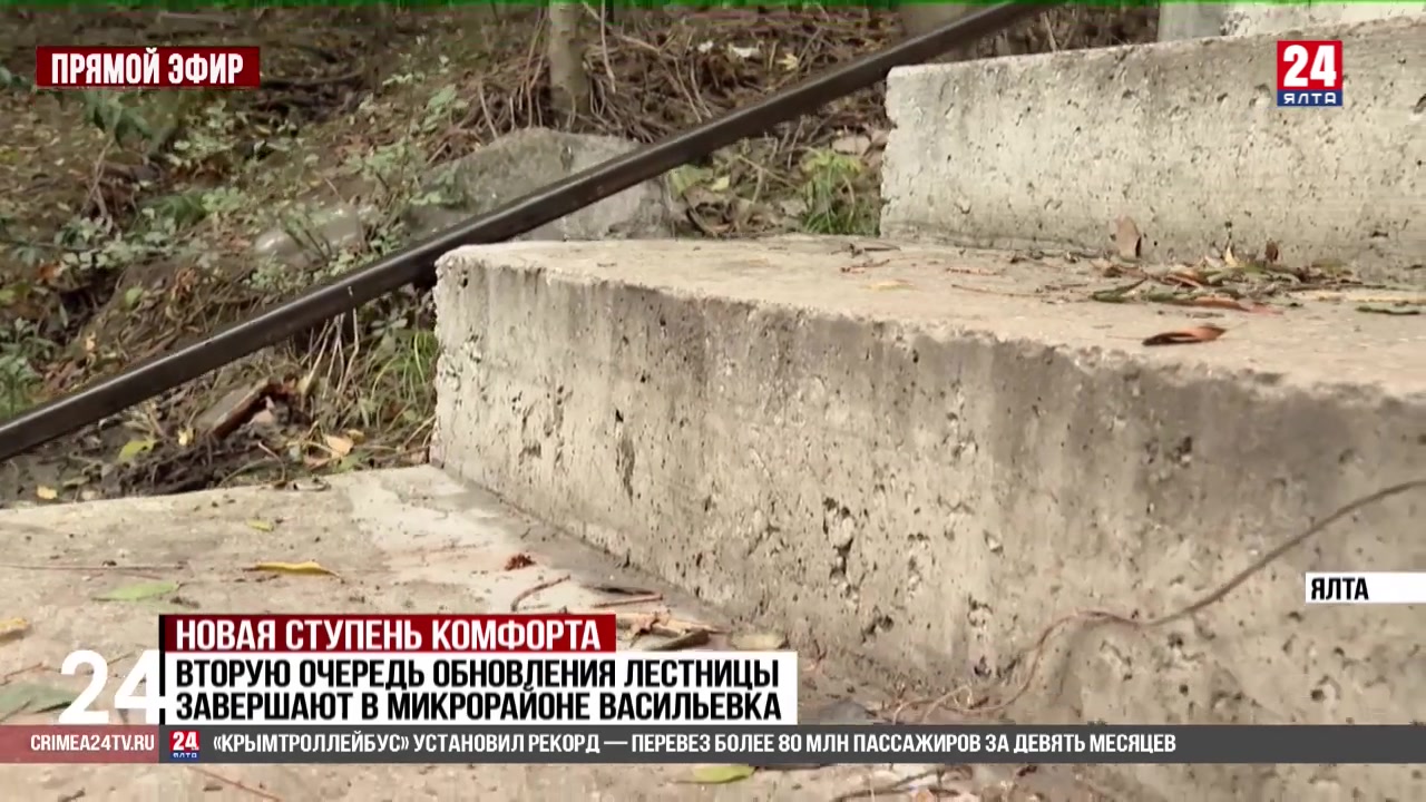 Ландшафт Большой Ялты традиционно пересечён лестницами. Три из них отремонтируют к декабрю. Одно из сооружений осталось оборудовать перильным ограждением. Другое приходится переделывать после недобросовестного подрядчика. А вскоре начнут обновлять и V-образный спуск в курортном посёлке Южнобережья. Как меняется облик пешеходных маршрутов, увидел корреспондент телеканала «Крым 24» Никита Аброчнов.