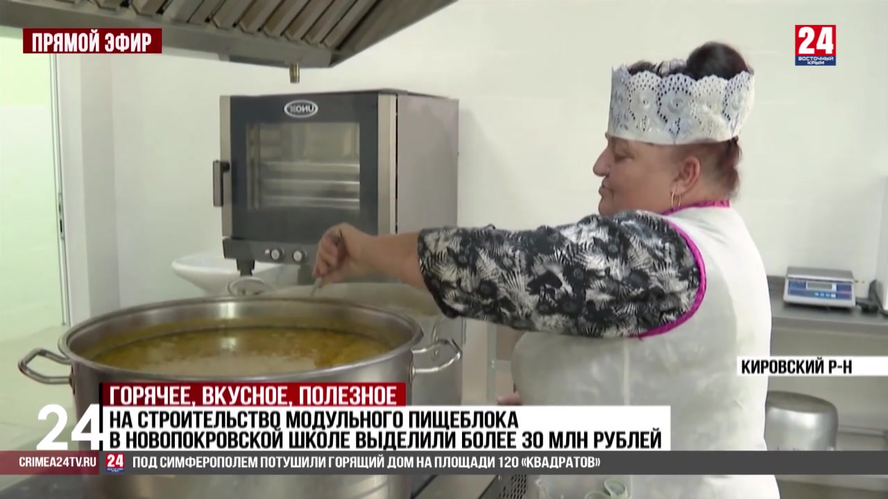 Электрические плиты, варочные котлы, пароконвектоматы и жарочные шкафы. Для школьников Новопокровки Кировского района горячие обеды и завтраки теперь готовят в новом пищеблоке. Такой же пищеблок возведут и в 14-й феодосийской школе. Когда сдадут объект? Смотрите далее в сюжете корреспондента телеканала «Крым 24» Сергея Руденко.