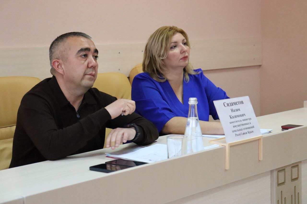 Сегодня заместитель министра имущественных и земельных отношений Республики Крым Назим Казимович Сидаметов провел выездное совещание по вопросам оформления прав собственности в СНТ для председателей и наших сотрудников администрации.