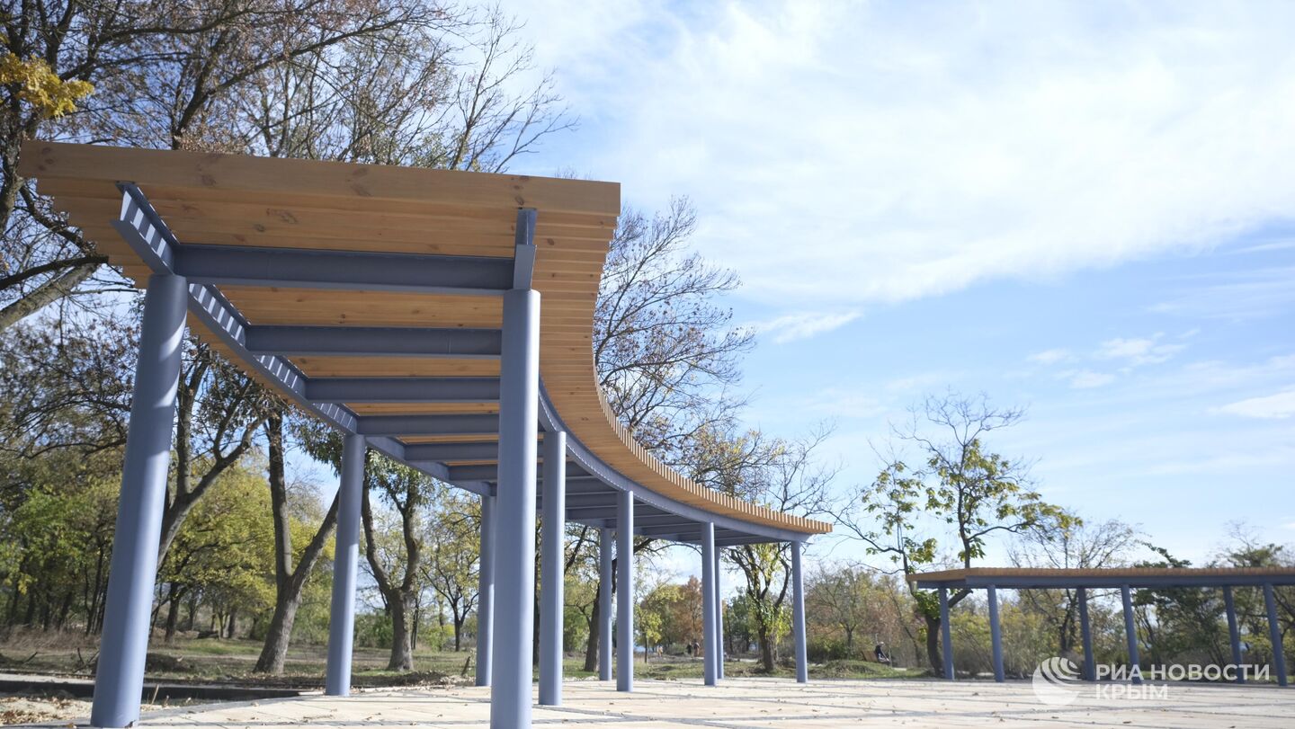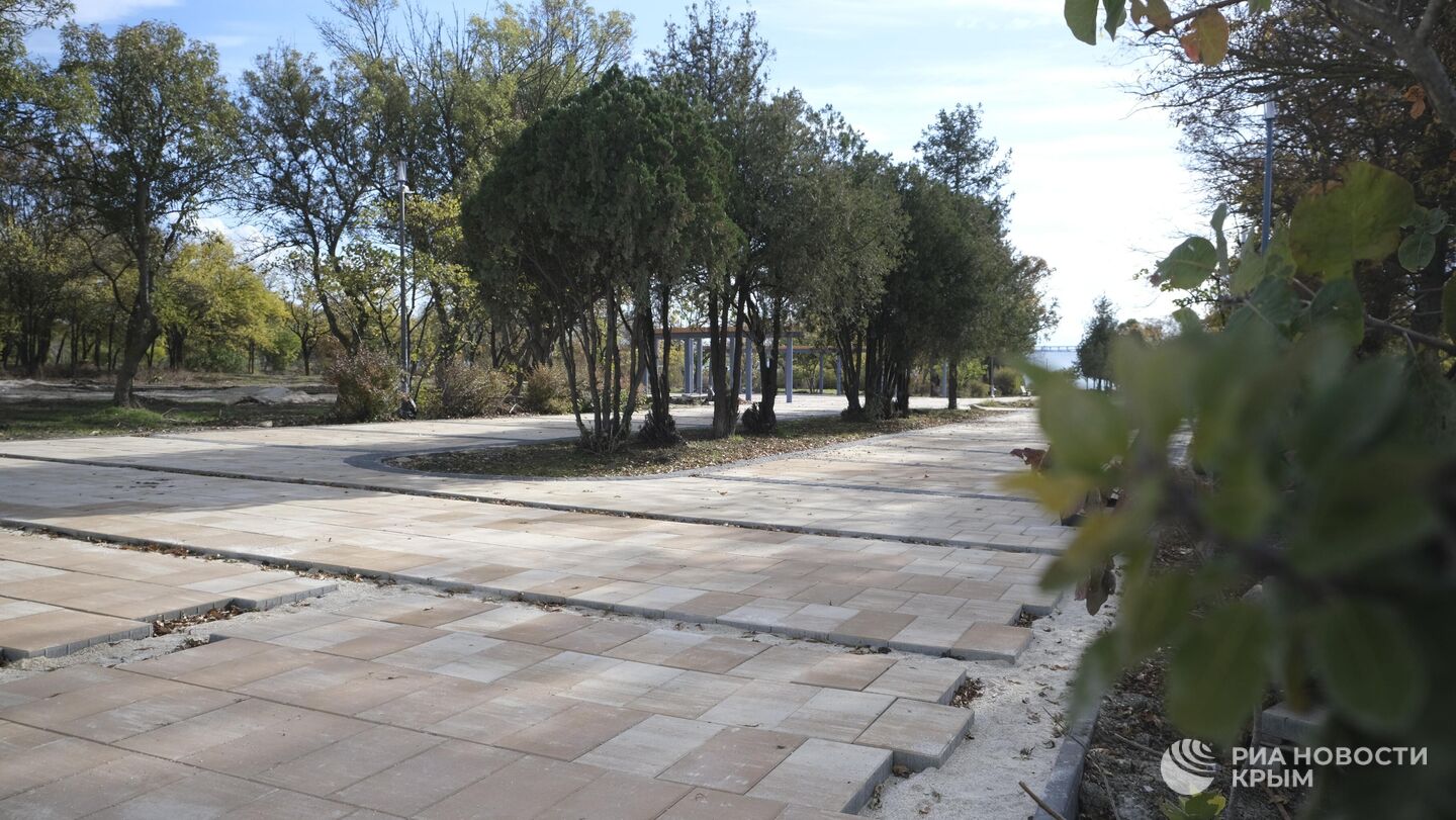 КЕРЧЬ, 22 окт – РИА Новости Крым. Скамейки, две сотни светильников, система полива, детские игровые элементы, ровные прогулочные тропинки и современный "сухой" фонтан. Так в начале декабря будет выглядеть парк им. Войкова (Приморский). Его благоустройство уже выполнено на на 80%, предает корреспондент РИА Новости Крым.