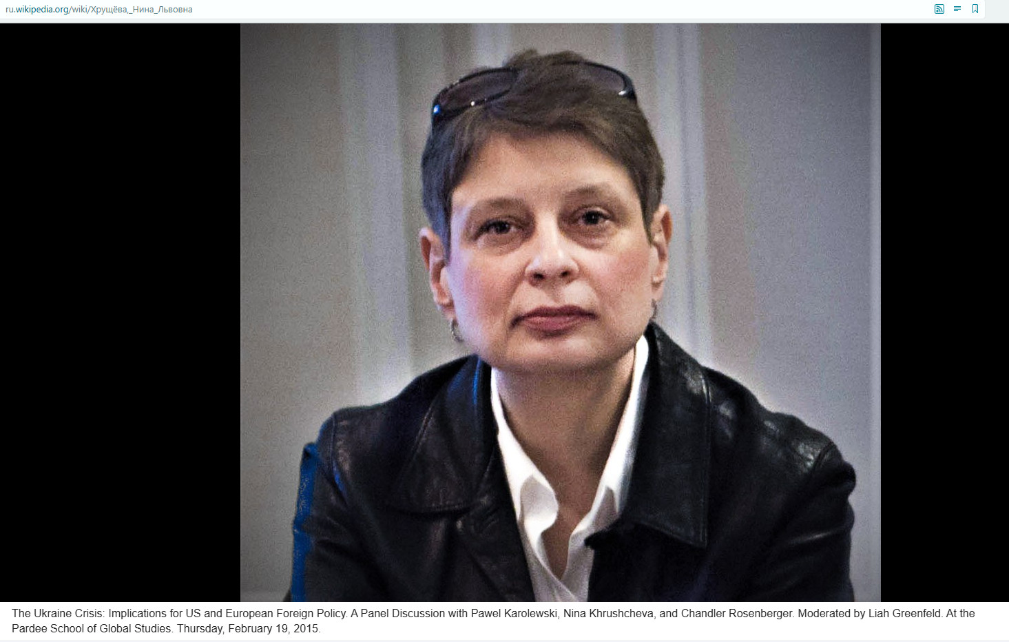 Её сестра Нина Хрущёва по образованию является литературоведом. Однако работает она почему-то в американском Институте мировой политики. Эта организация очень тесно связана с разведслужбами США. В одной из своих научных работ она пыталась выяснить, "как национальная идентичность россиян влияет на российскую политику".