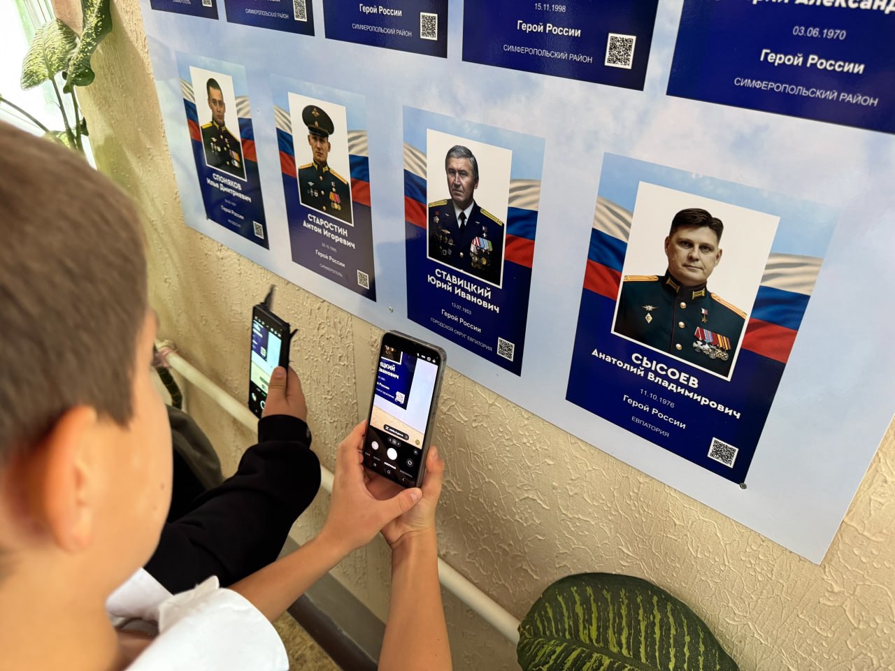 «Герои России — гордость Крыма» — с портретами и именами современных Героев, удостоенных высших государственных наград.