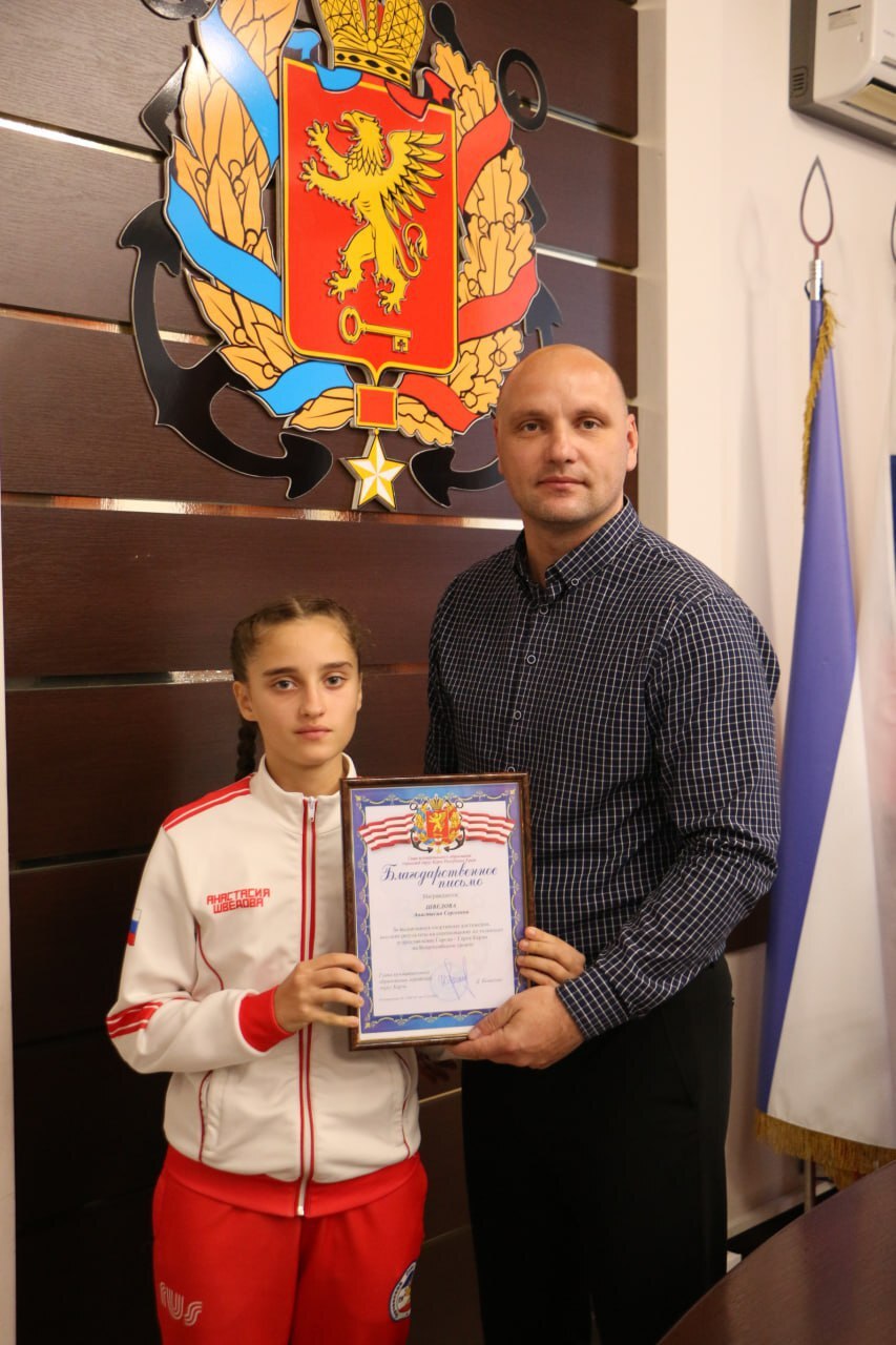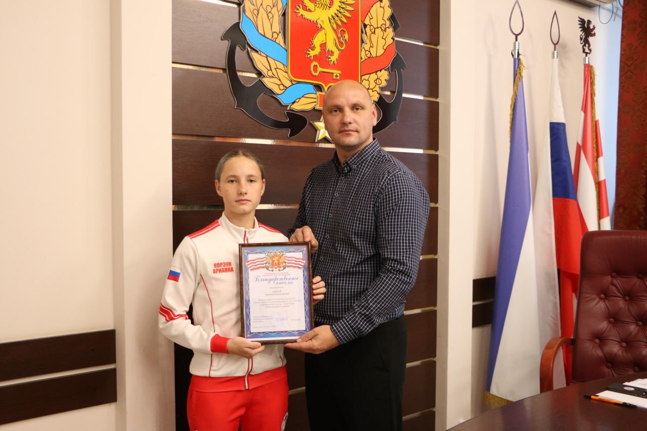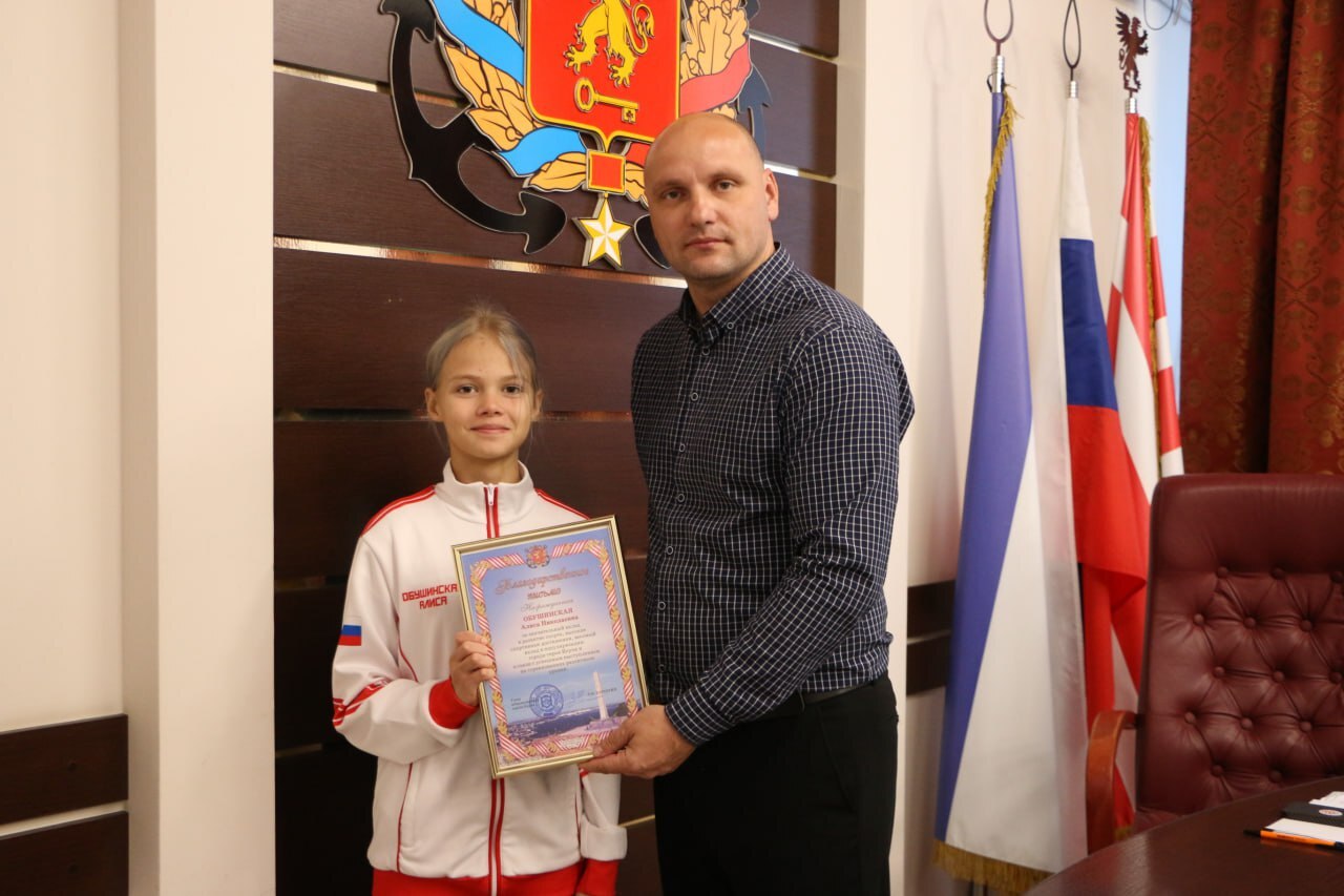 Глава муниципального образования Денис Колесник поздравил призеров Первенства России, победителей и призеров Всероссийских юношеских игр, Первенства ЮФО, Всероссийских соревнований.