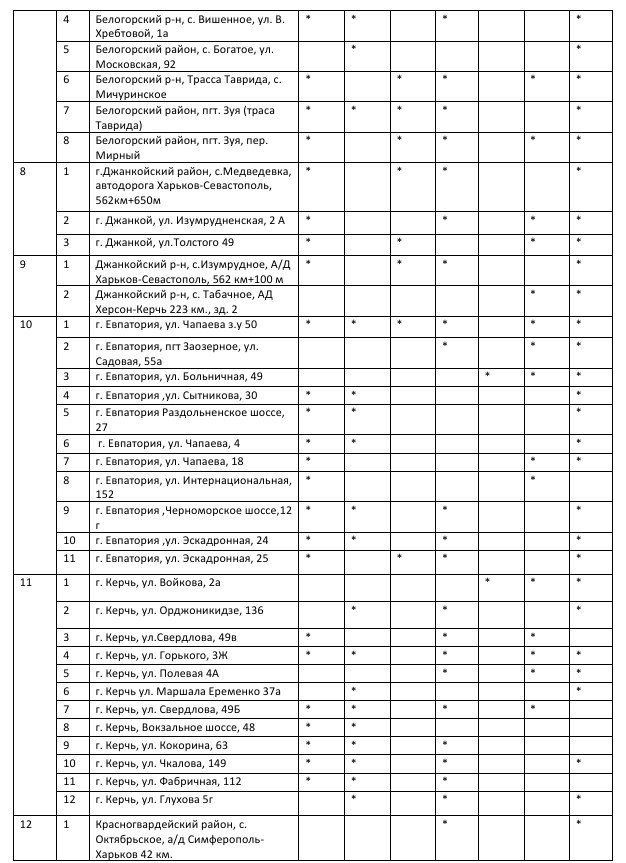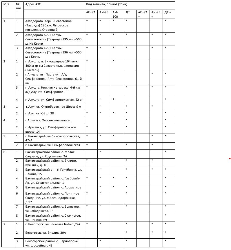 Перечень адресов АЗС, где имеется топливо в свободной продаже.