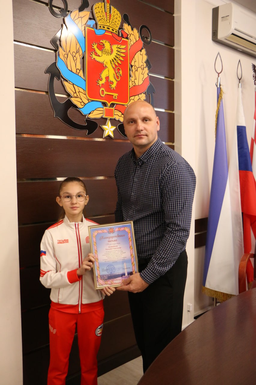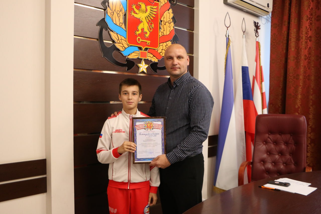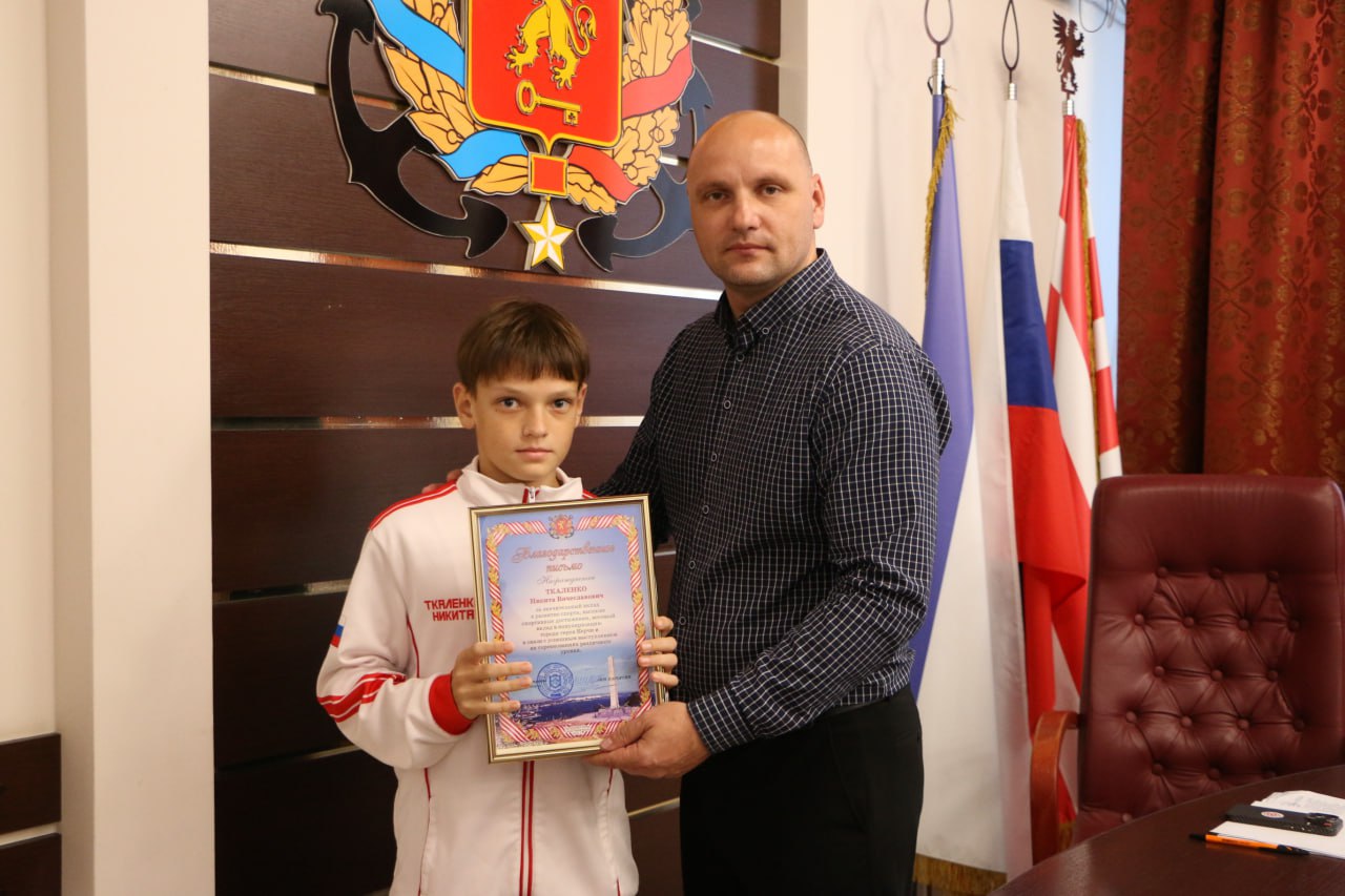 Глава муниципального образования Денис Колесник поздравил призеров Первенства России, победителей и призеров Всероссийских юношеских игр, Первенства ЮФО, Всероссийских соревнований.