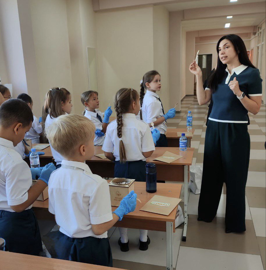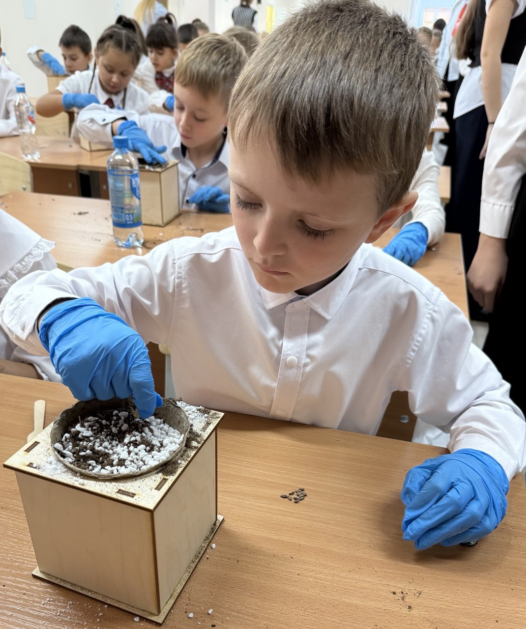 Заместители министра экологии и природных ресурсов Республики Крым Екатерина Беридзе и Ольга Дьяченко провели для ребят мастер-класс по посеву семян сосны крымской, рассказали, как правильно ухаживать за растением.