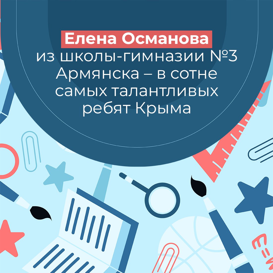 В этом году среди ста лучших — Елена Османова из Армянска. За свой кропотливый и усердный ученический труд она будет получать специальную стипендию ежемесячно в течение всего учебного года. Поздравляем Елену и желаем не останавливаться на достигнутом!