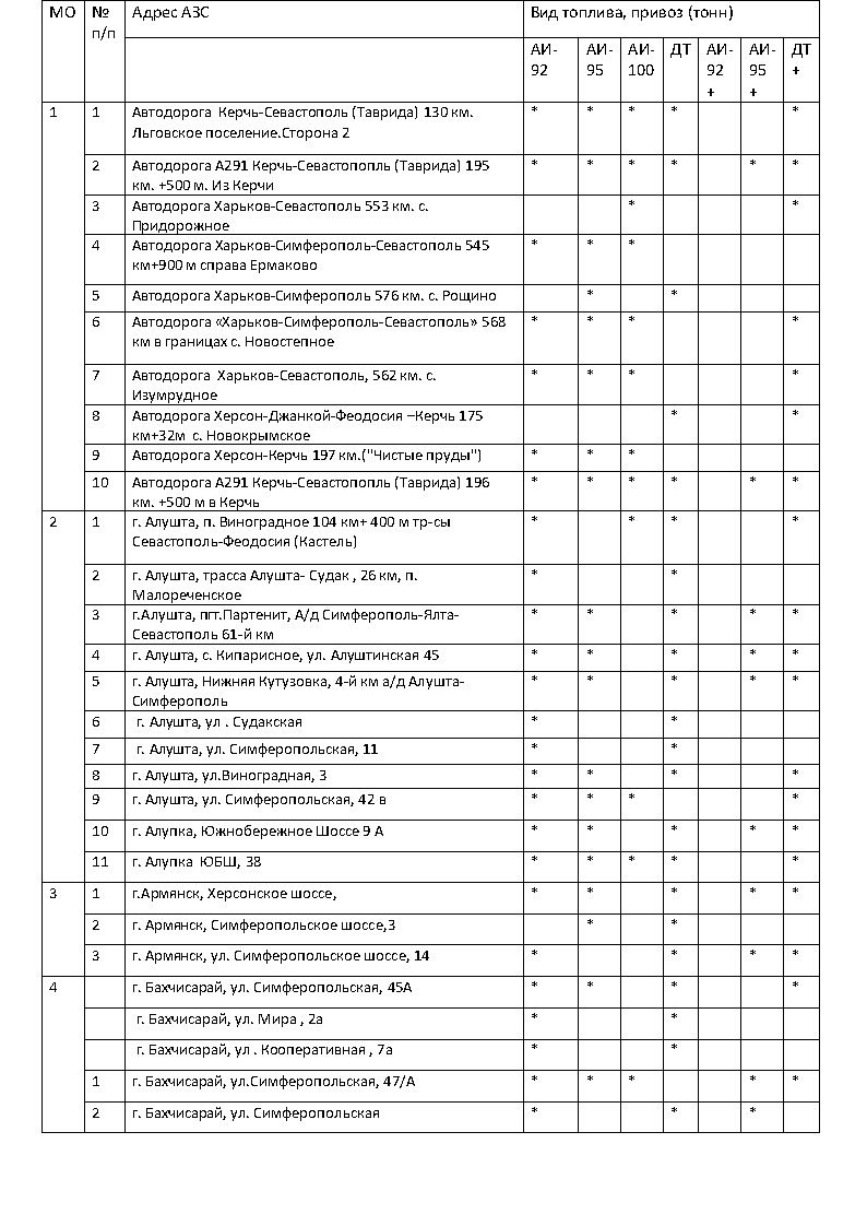 В прилагаемом списке указаны марки топлива и адреса АЗС, где оно доступно в свободной продаже.