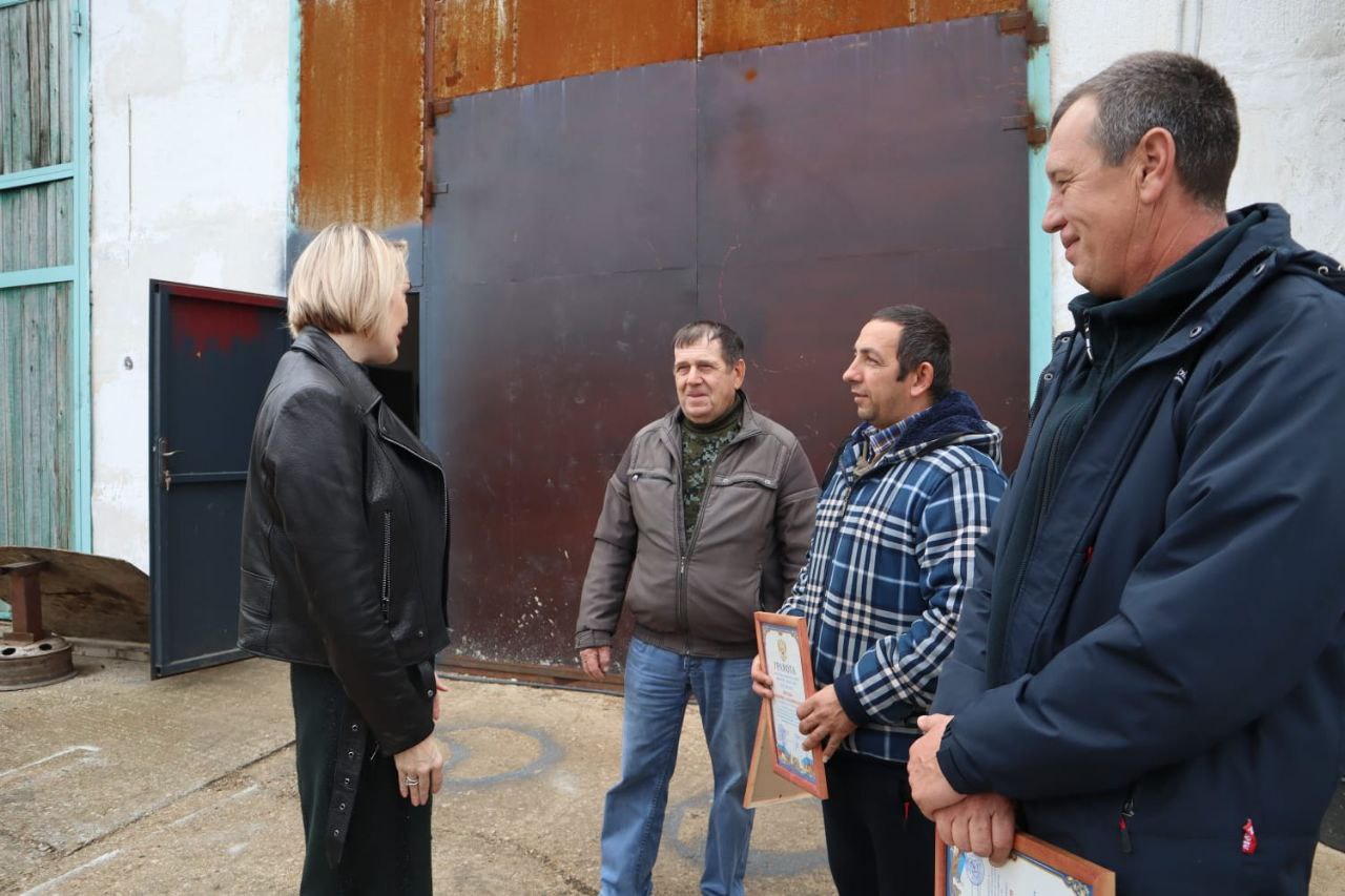 Грамоты от администрации Джанкойского района вручила трактористам Владимиру Владимировичу Лихачеву и Александру Михайловичу Жукову, управляющему делами К(Ф)Х Щербаков Е.Н. Виктору Олеговичу Лаговскому.
