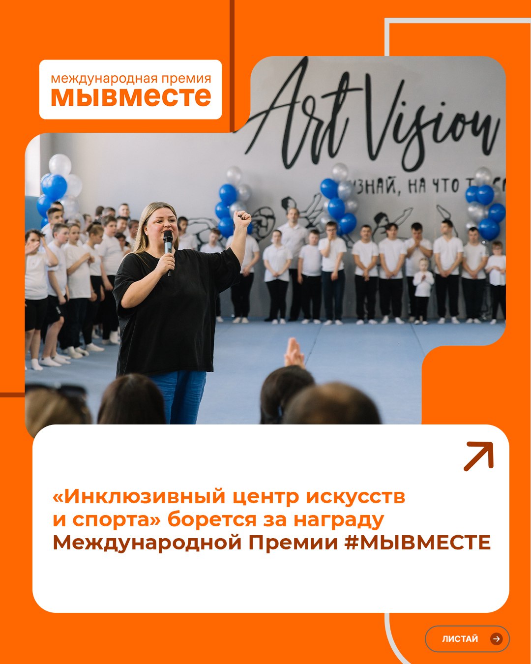 Проект «Инклюзивный центр искусств и спорта «Art Vision» борется за награду Международной Премии #МЫВМЕСТЕ. Его основная цель — создание и масштабирование в Крыму комплексной модели инклюзивного развития, обеспечивающей детям и молодёжи с ОВЗ равные возможности для творчества, спортивной и социальной жизни. Заместитель Председателя Правительства России Дмитрий Чернышенко рассказал, что в этом году финалистами стали участники из 23 стран и 31 региона России.