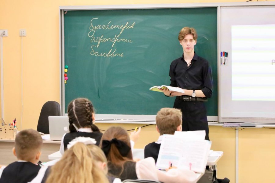 Молодой педагог отмечает, что ему помогает поддержка наставника — опытного учителя русского языка и литературы Элеоноры Михайловны Купчиной и всего коллектива школы.