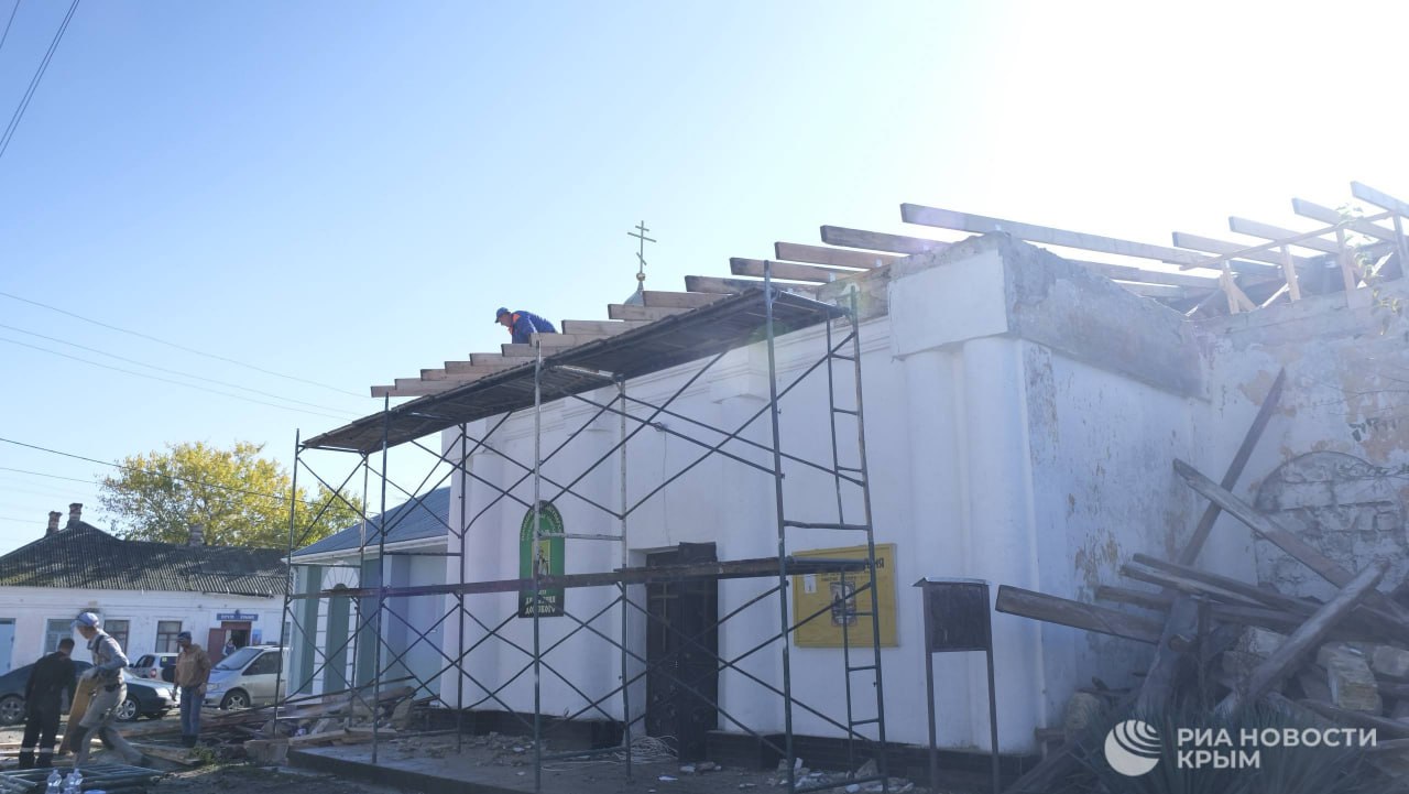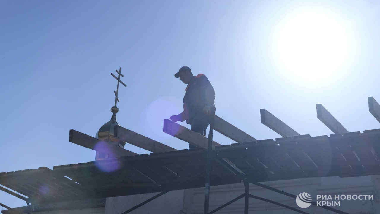 Все своими силами: в Керчи прихожане ремонтируют кровлю храма Дмитрия Донского.
