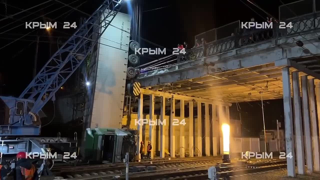 В Симферополе длинномерную фуру, упавшую с моста на ЖД пути, не станут распиливать. Об этом корреспонденту «Крым 24» сообщил заместитель главы администрации крымской столицы Александр Семенченко.