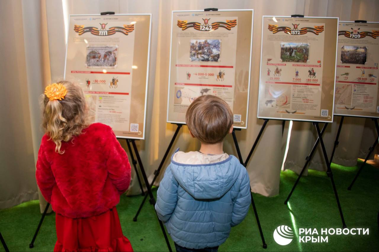 Кадры с открытия выставки проекта РИА Новости Крым "Защитники земли русской" в Массандровском дворце.
