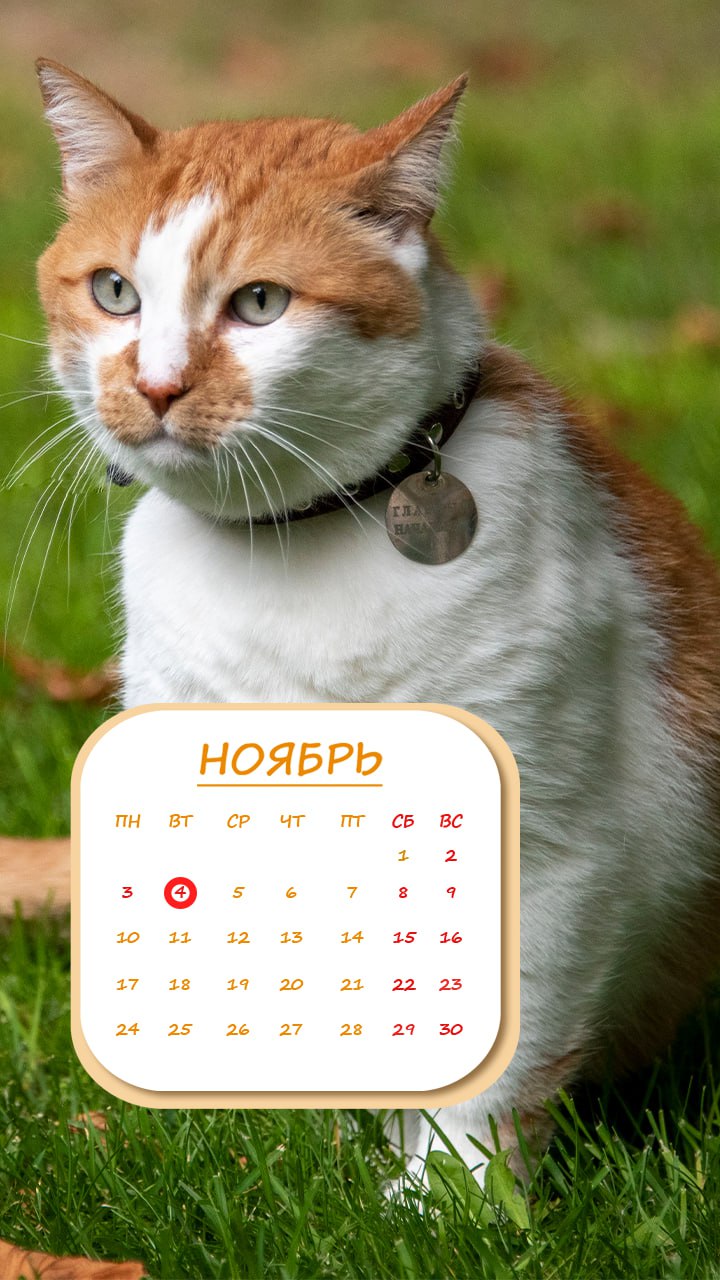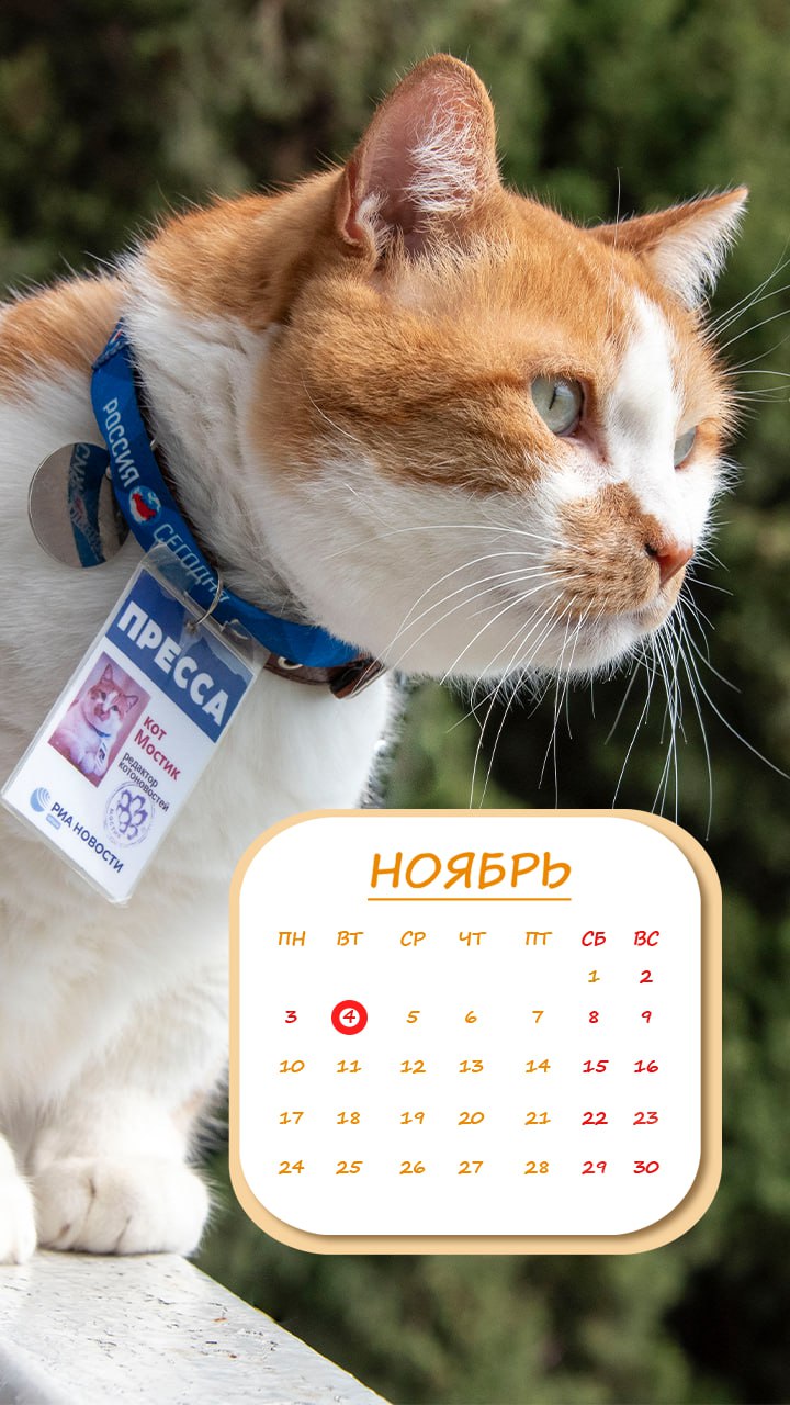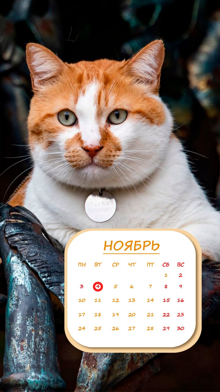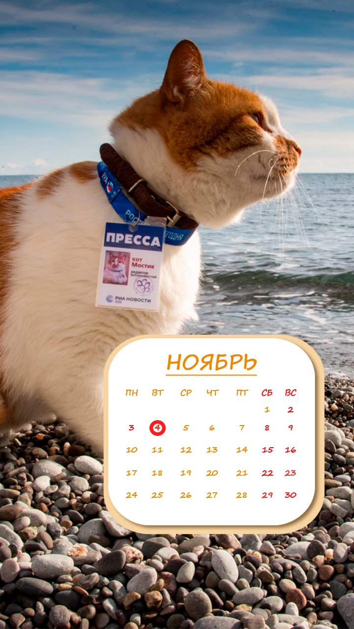 Как и положено — с красивым котом и удобным календарем на месяц.