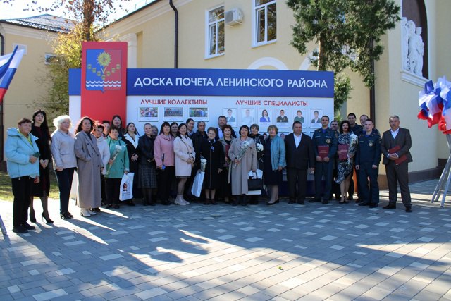 Кульминацией праздничного мероприятия стало торжественное открытие Доски Почета Ленинского района, где отмечены выдающиеся работники, служащие и коллективы. Среди них — работники коммунальных служб, спортсмены, муниципальные служащие, врачи, представители сельского хозяйства и культуры. Их труд — основа процветания района.