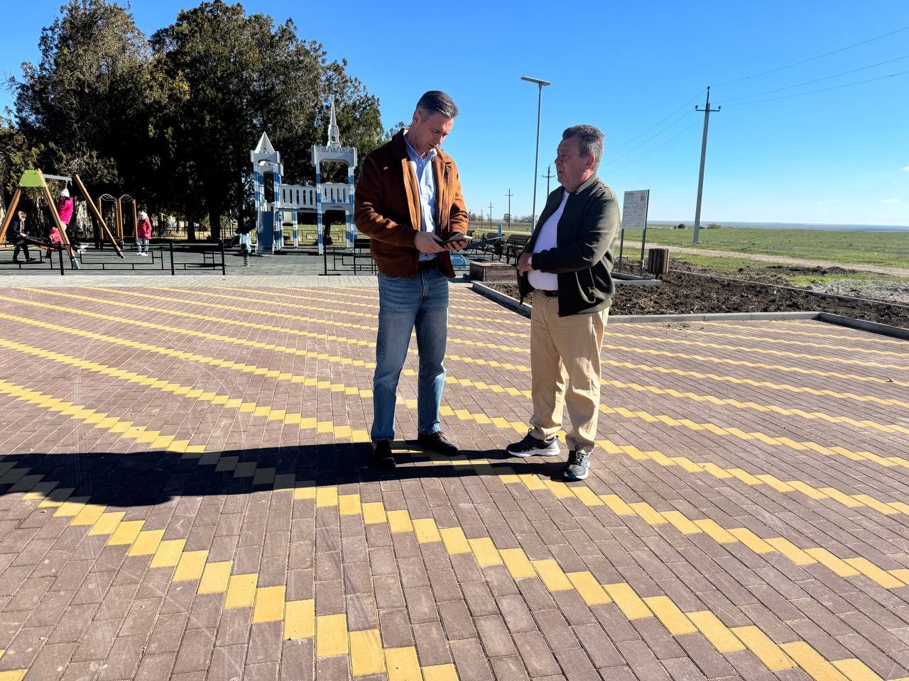 Вместе с подрядчиком осмотрел территорию возле детской площадки в селе Хмелево. Здесь идет благоустройство общественной территории. Строители уже завершили работы по мощению тротуарной плиткой. Совсем скоро здесь установят лавочки, урны и уличное освещение. Эта площадка станет зоной отдыха для жителей села.