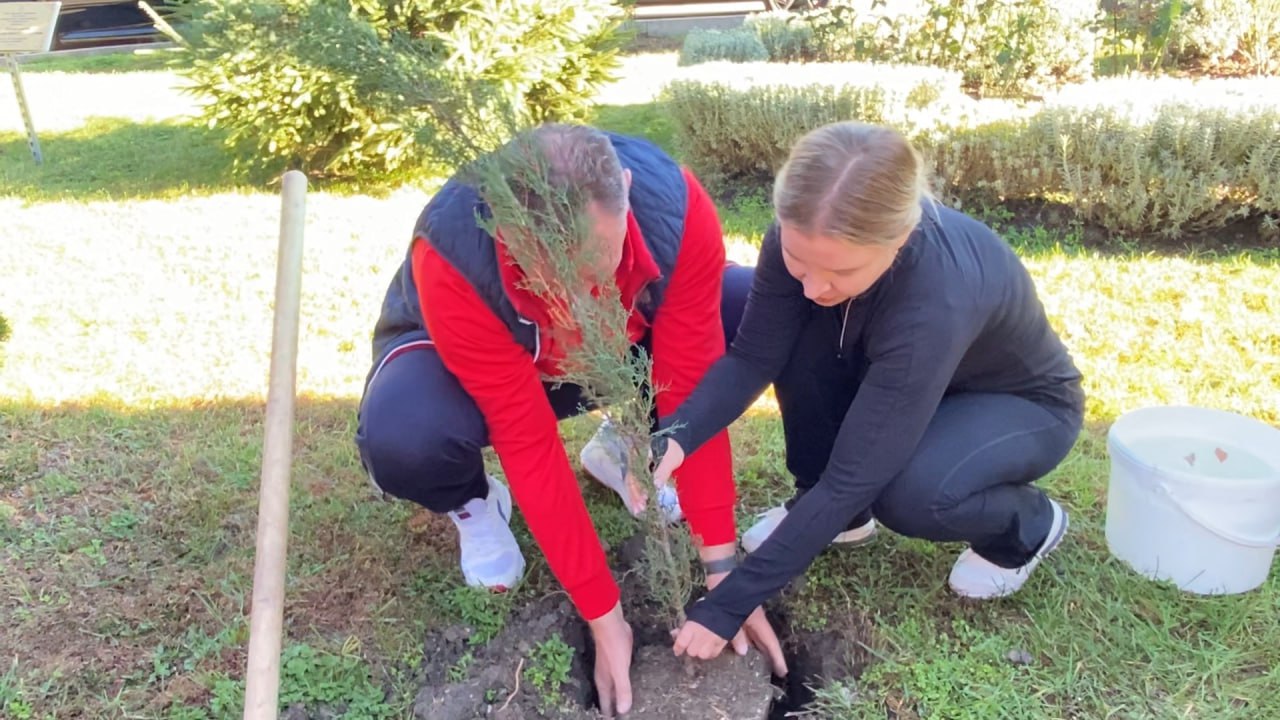 После зарядки на аллее 80-летия Победы высадили кипарисовое дерево. Это символ сплочённости и совместных усилий ради светлого будущего. Акцию посвятили Дню народного единства.