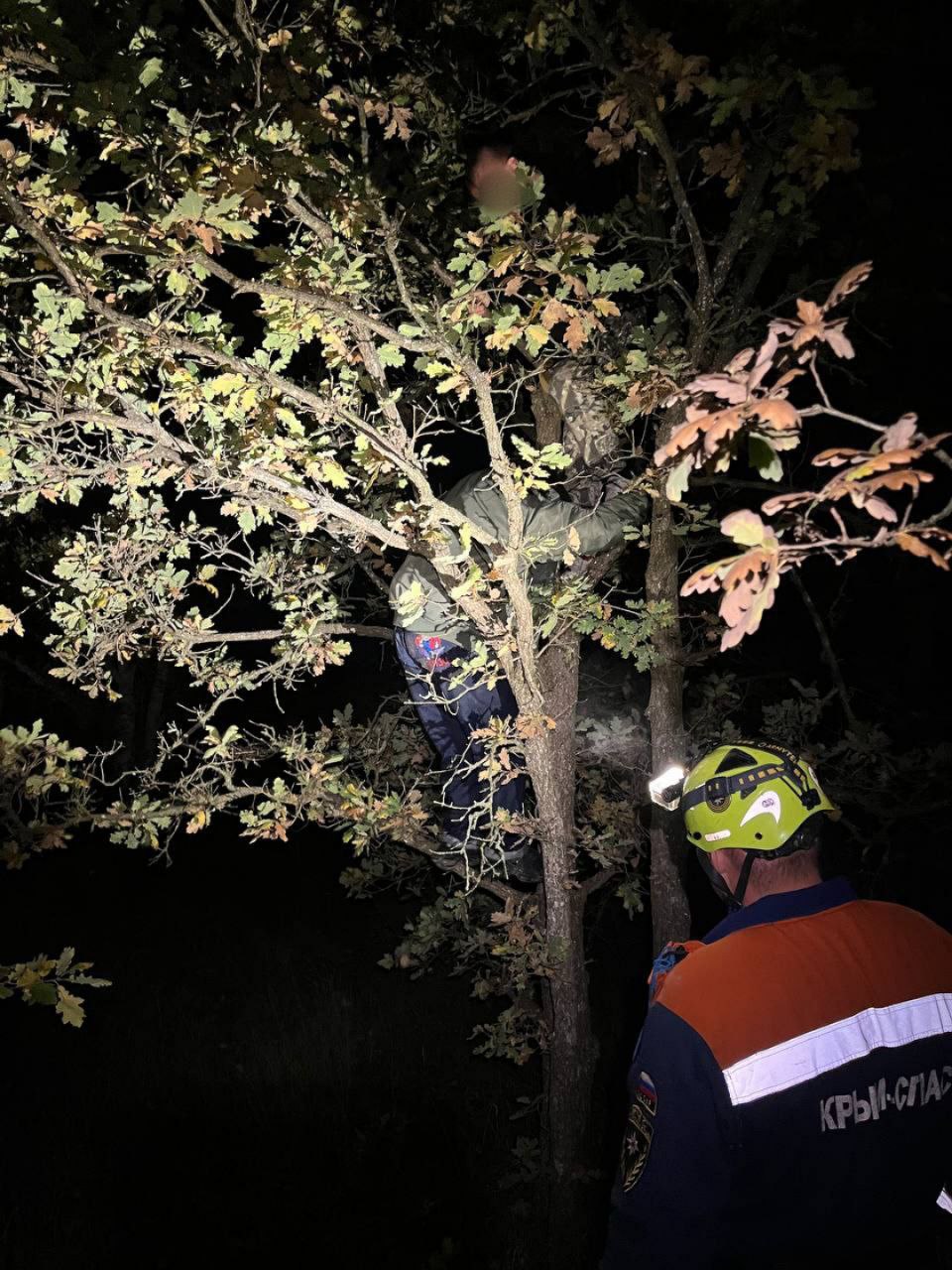 Фото: МЧС Крыма«Вчера в 19:20 поступило сообщение о том, что в горно-лесной зоне в районе села Молочное (Симферопольский район) двое несовершеннолетних залезли на дерево, спасаясь от кабанов», — сказано в сообщении.