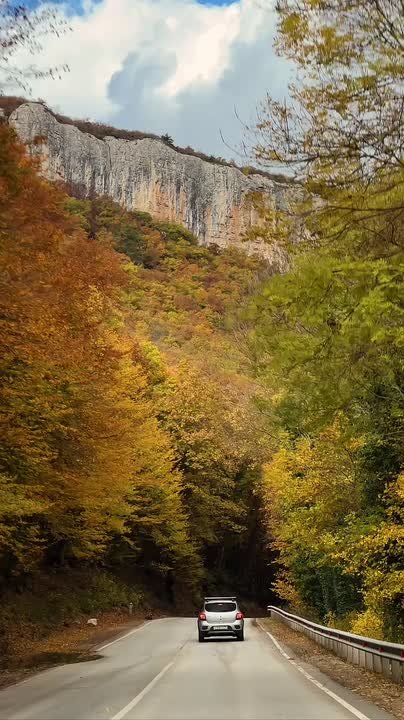 Терновка – Танковое (в р-не между Севастополем и Бахчисараем). Особенно обожаю осенью участок рядом с Мангуп-Кале. Как раз он на видео.