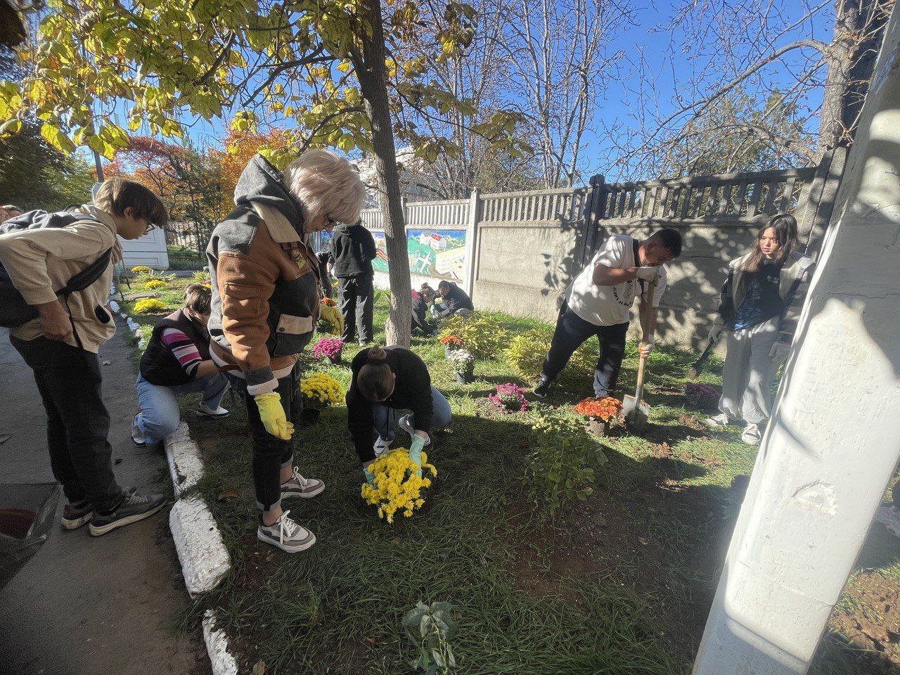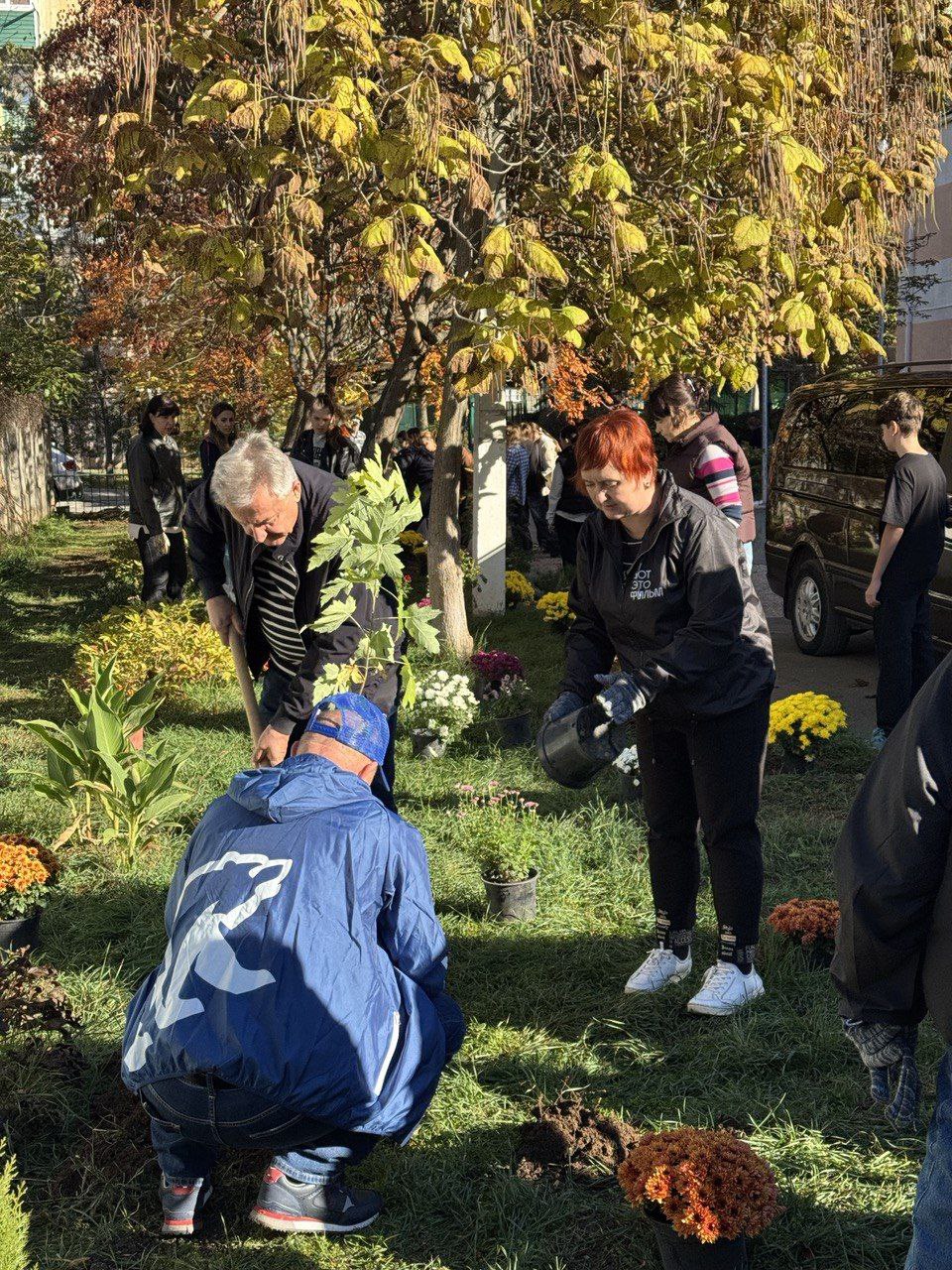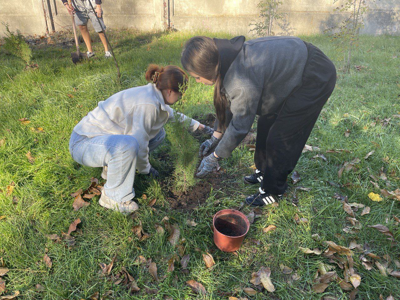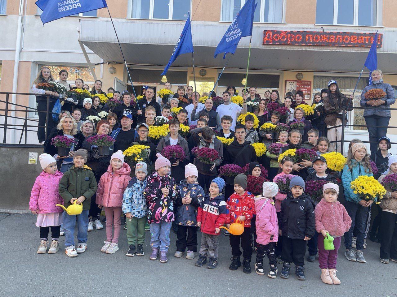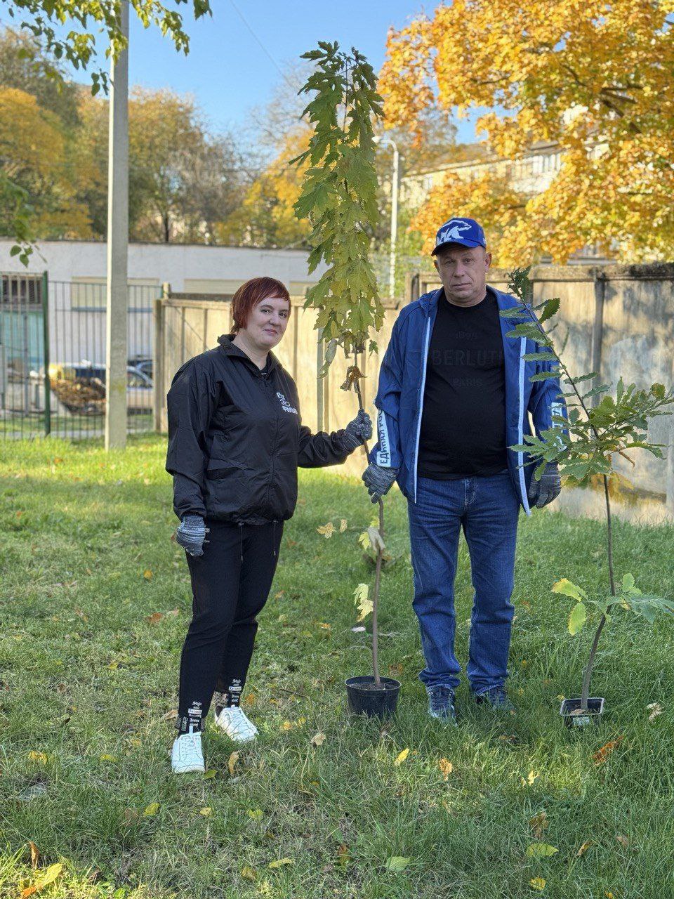 Были высажены саженцы клёнов, туй, дубов и 150 кустов хризантем.