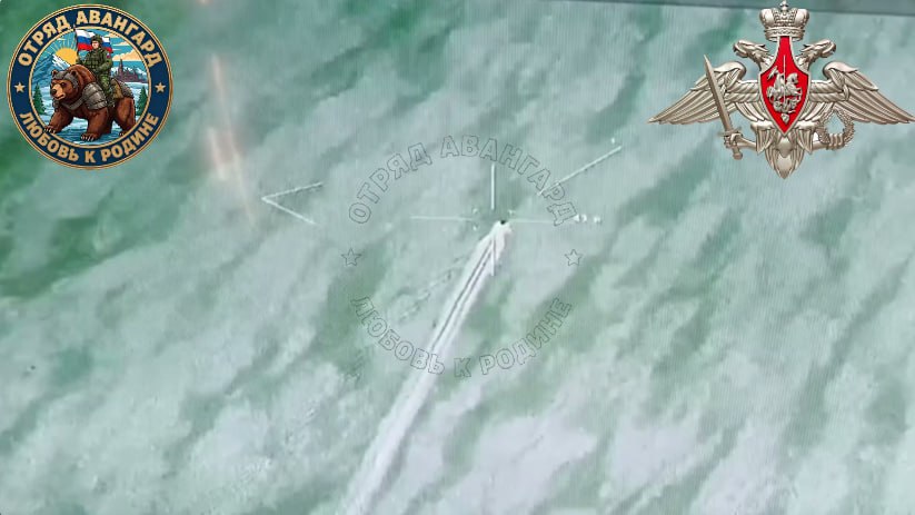 Разведывательно-ударный БПЛА "Орион" уничтожает украинский безэкипажный катер, который шел к Краснодарскому краю.