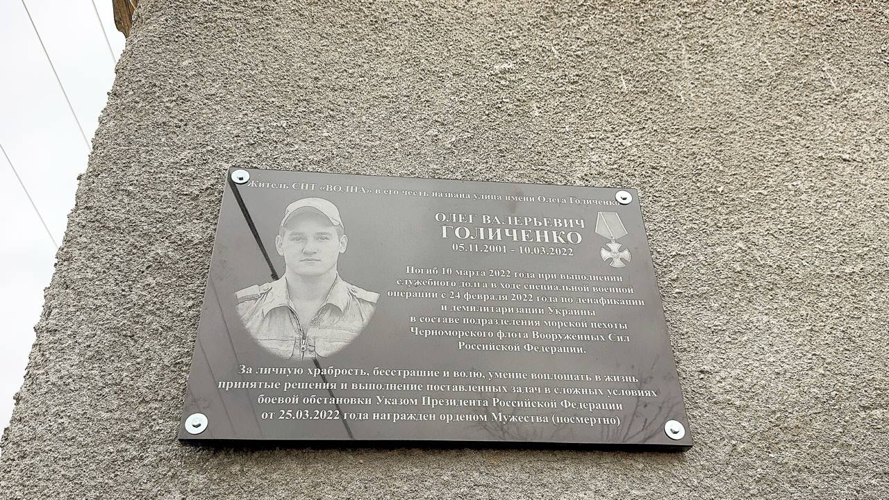 "В марте 2022 года под Мариуполем во время артобстрела погиб 20-летний житель Черноморского района Олег Голиченко. Он ушел из жизни, выполняя свой воинский долг, проявляя мужество и самоотверженность. Он навсегда останется в наших сердцах как герой, отдавший свою жизнь за безопасность и мирное будущее нашей страны", - сказал Дудинов. Глава районной администрации также напомнил, что Голиченко был жителем СНТ «Волна» и после его смерти одна из улиц садового товарищества была названа в его честь.Ранее в крымском ВУЗе увековечили память погибшего в зоне СВО военкора Александра Федорчака